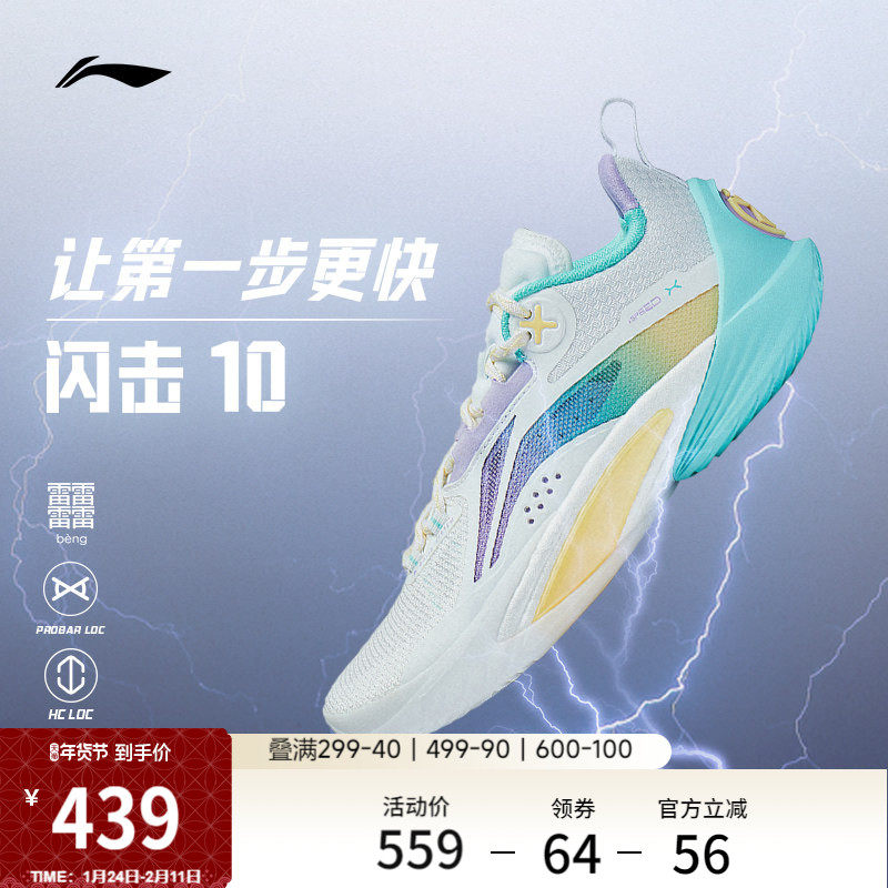 李宁闪击10丨 男款官方正品低帮篮球鞋男减震耐磨实战专业运动鞋