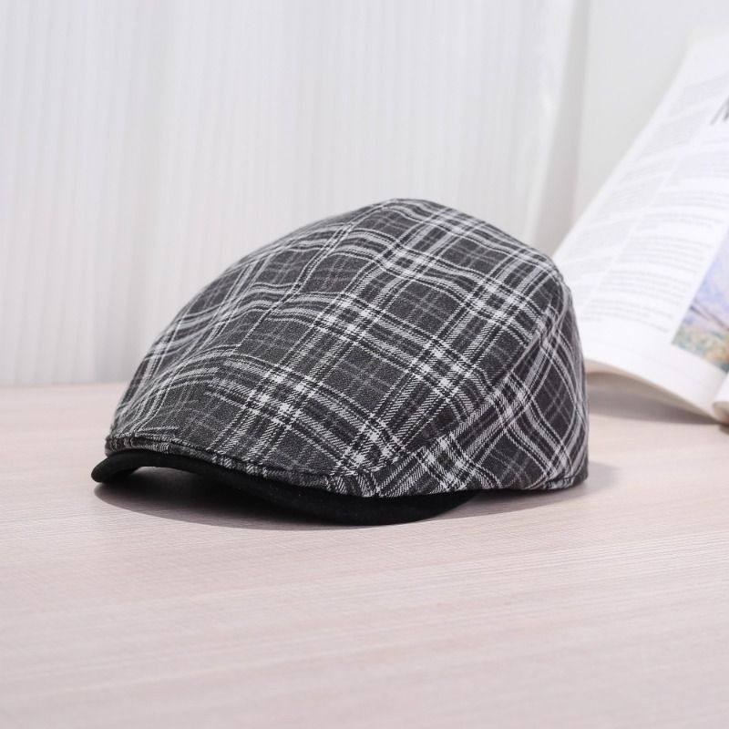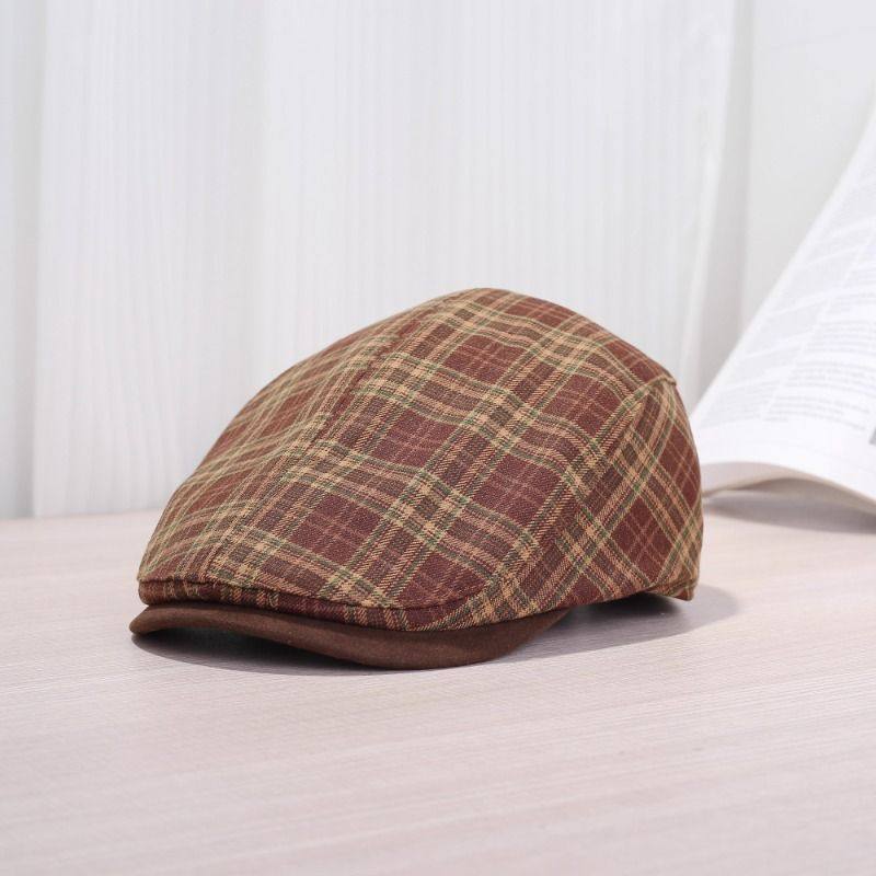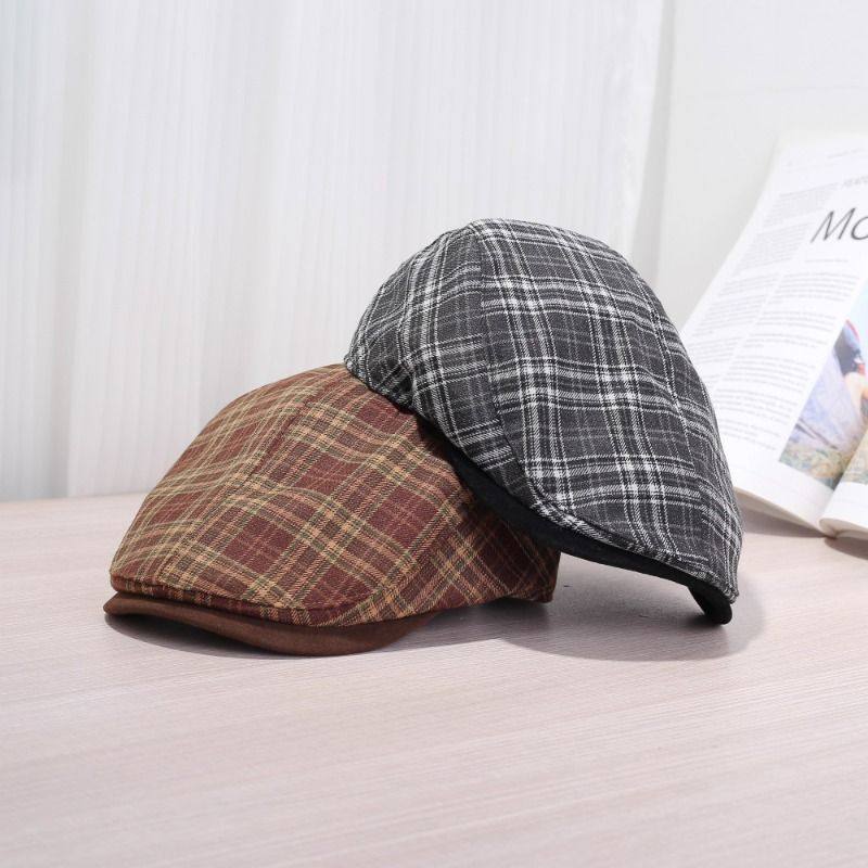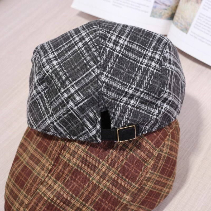 春秋季复古格子前进帽子女日系文艺百搭鸭舌帽贝雷帽反戴画家帽男