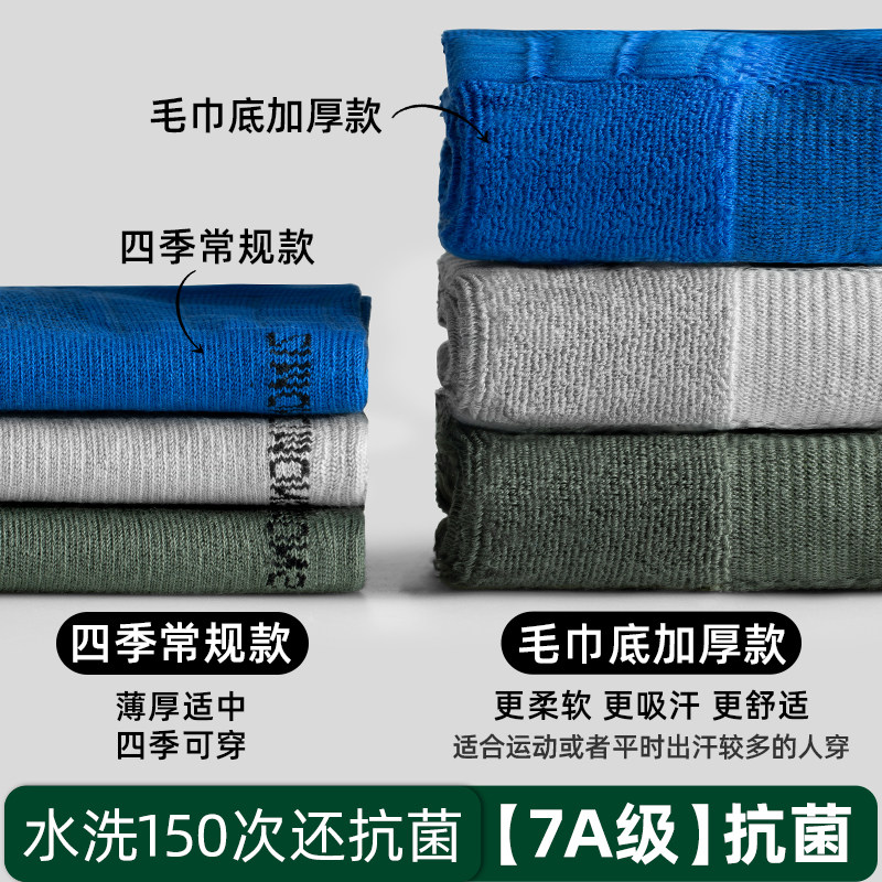 袜子男纯棉秋冬款短袜7a抗菌灰色保暖防臭厚吸汗青少年男士中筒袜