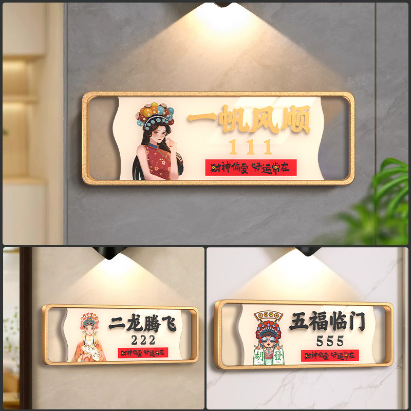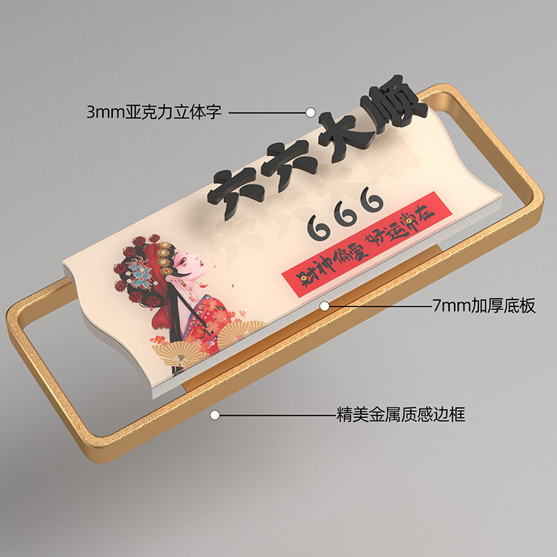 棋牌室门牌高级感麻将馆棋牌房包厢包房包间门牌定制八方来财六六大顺门牌号亚克力国潮创意茶楼数字房间号牌