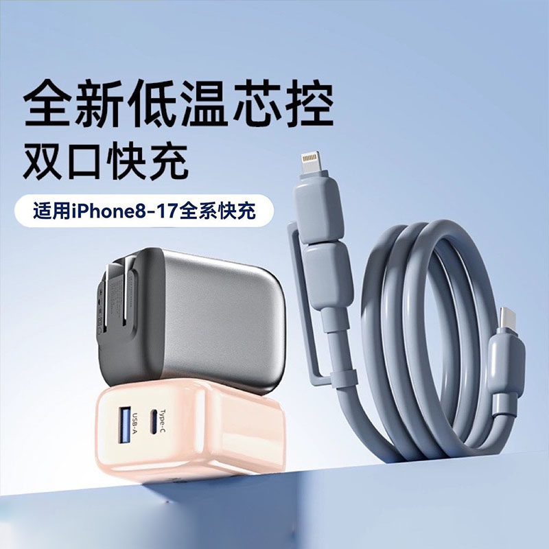 【新国标3C认证】充电器双孔usb快充头适用苹果17/15/14华为小米安卓充电头手机快充typec数据线PD二合一套装