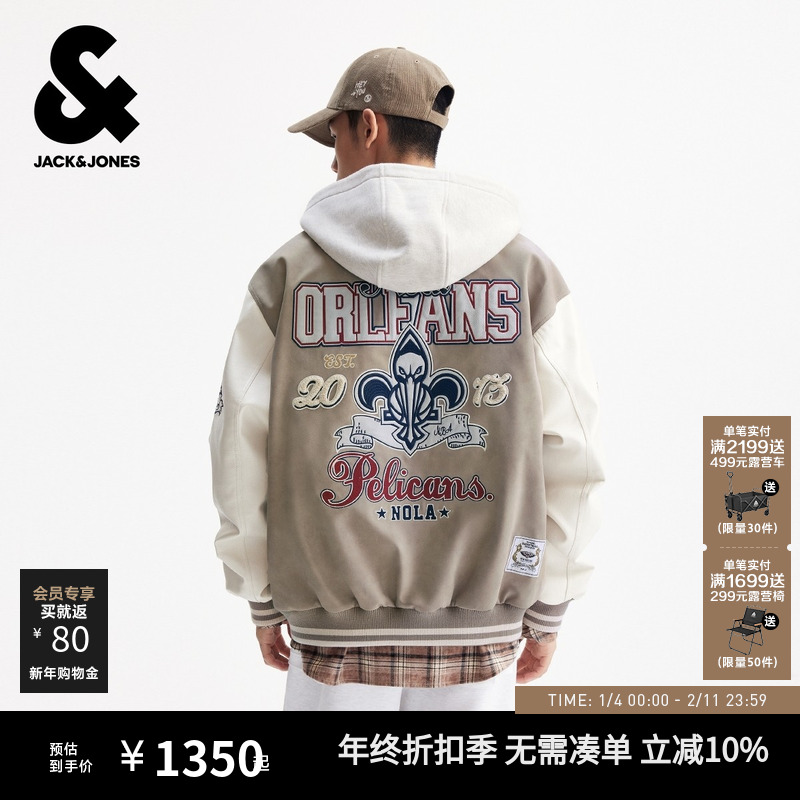 杰克琼斯NBA联名款鹈鹕队男装春季可拆卸连帽棉服复古运动风外套