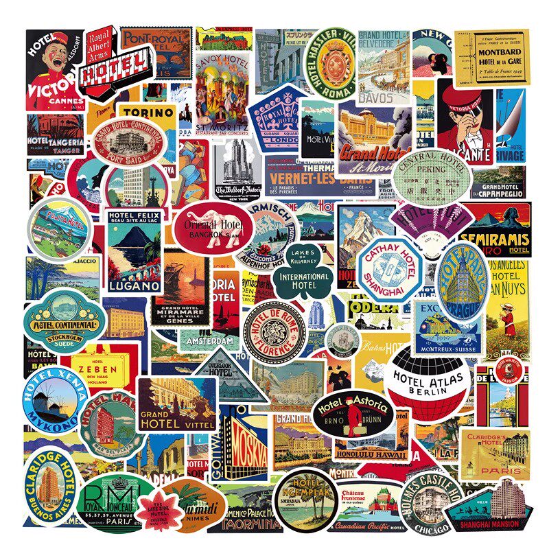 100张欧美电影海报怀旧美式复古贴纸个性diy笔记本电脑平板吉他柜子玻璃水杯机车摩托车头盔手账装饰贴画防水