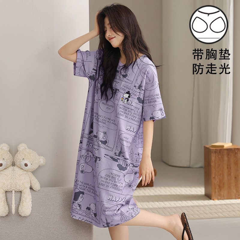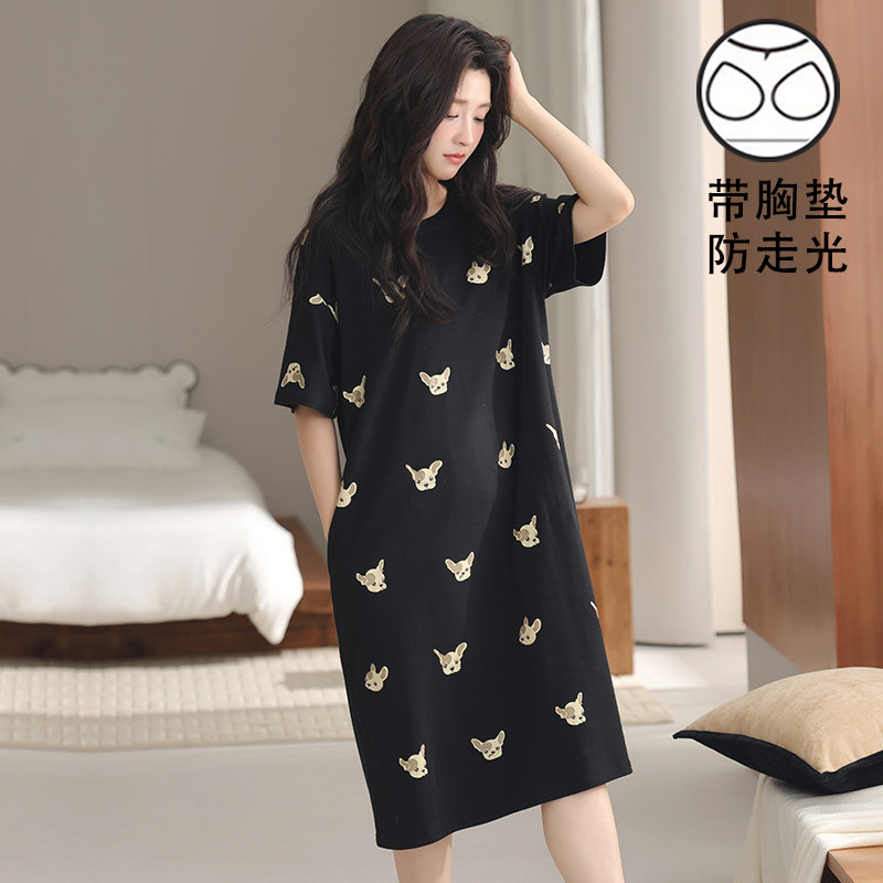 睡裙女夏季薄款卡通大码200斤短袖胖mm家居服睡衣可爱孕妇连衣裙