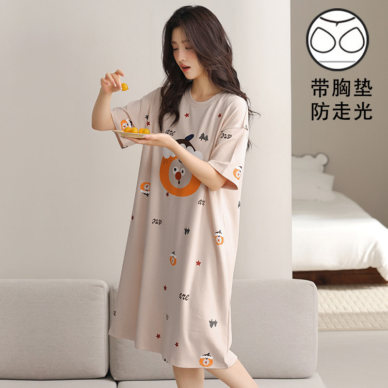 连衣裙女莫代尔短袖睡裙夏薄款打底裙外穿宽松百搭家居服大码长裙