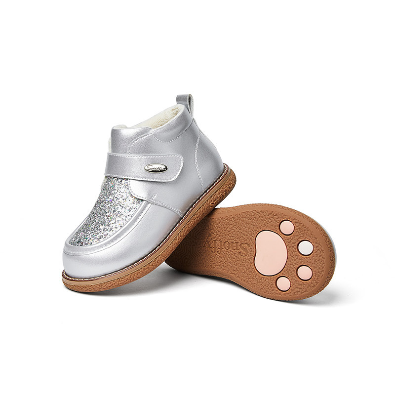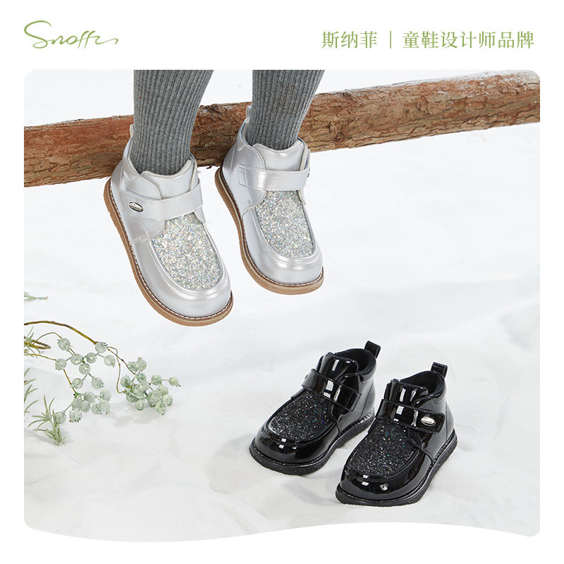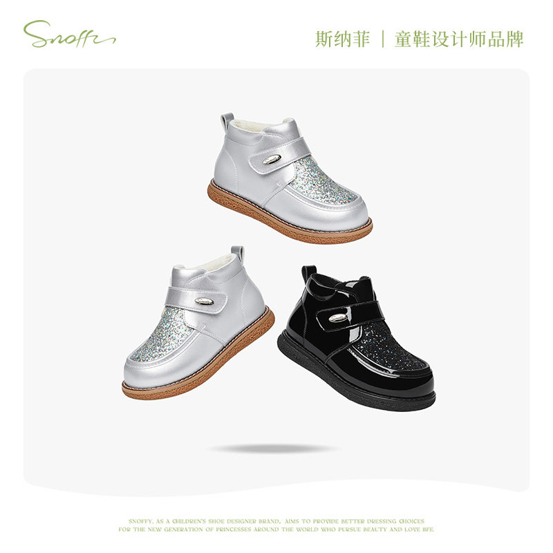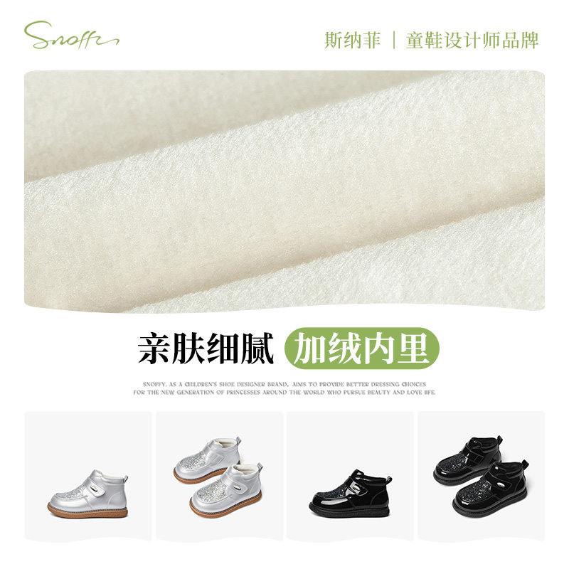 斯纳菲儿童棉鞋女童水晶靴2025秋冬新款公主棉靴亮闪闪加绒皮靴子