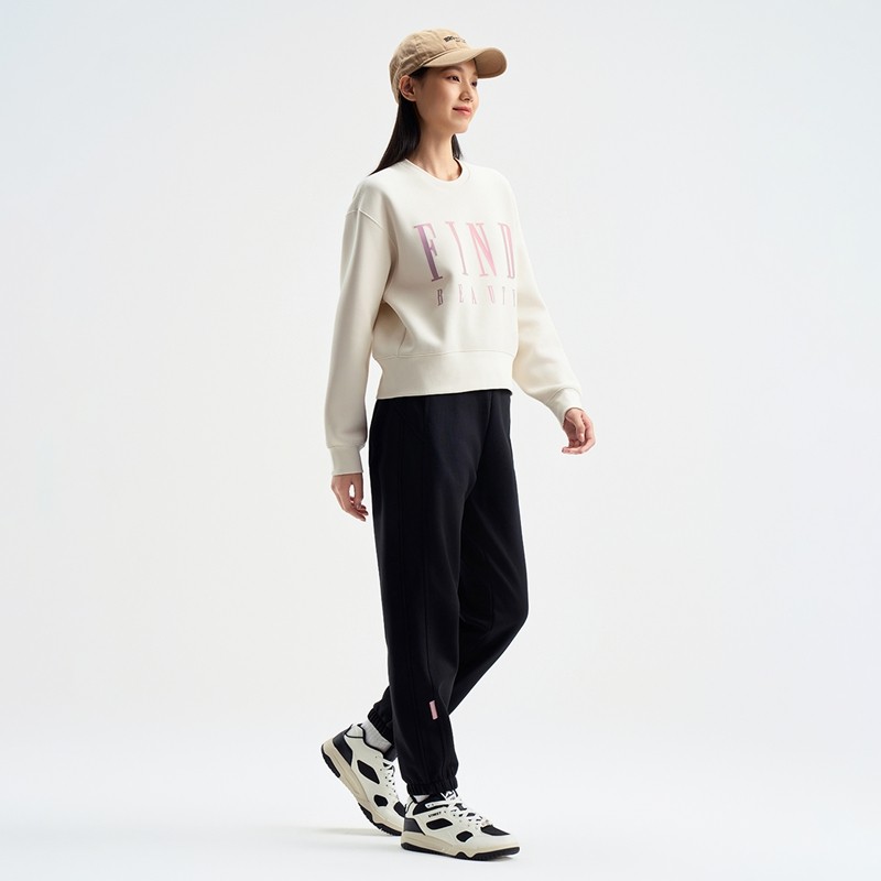 安踏奶芙裤丨运动长裤女裤冬季加绒黑色针织裤休闲跑步收口卫裤子