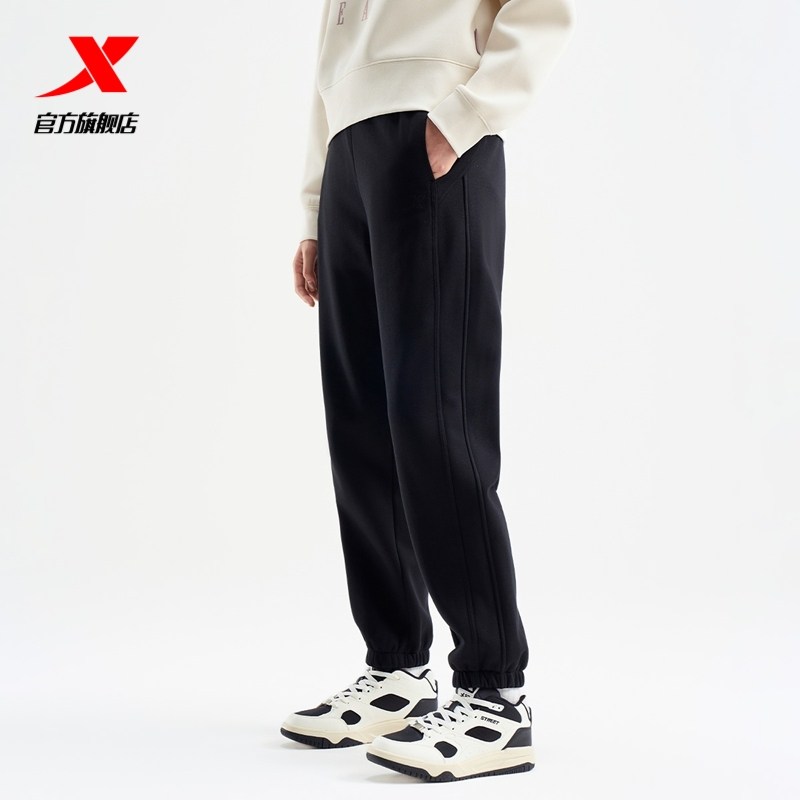 特步加绒卫裤男裤加厚秋冬款保暖缩脚裤直筒休闲裤百搭男子运动裤