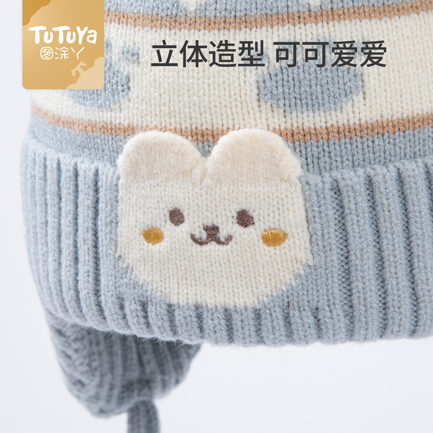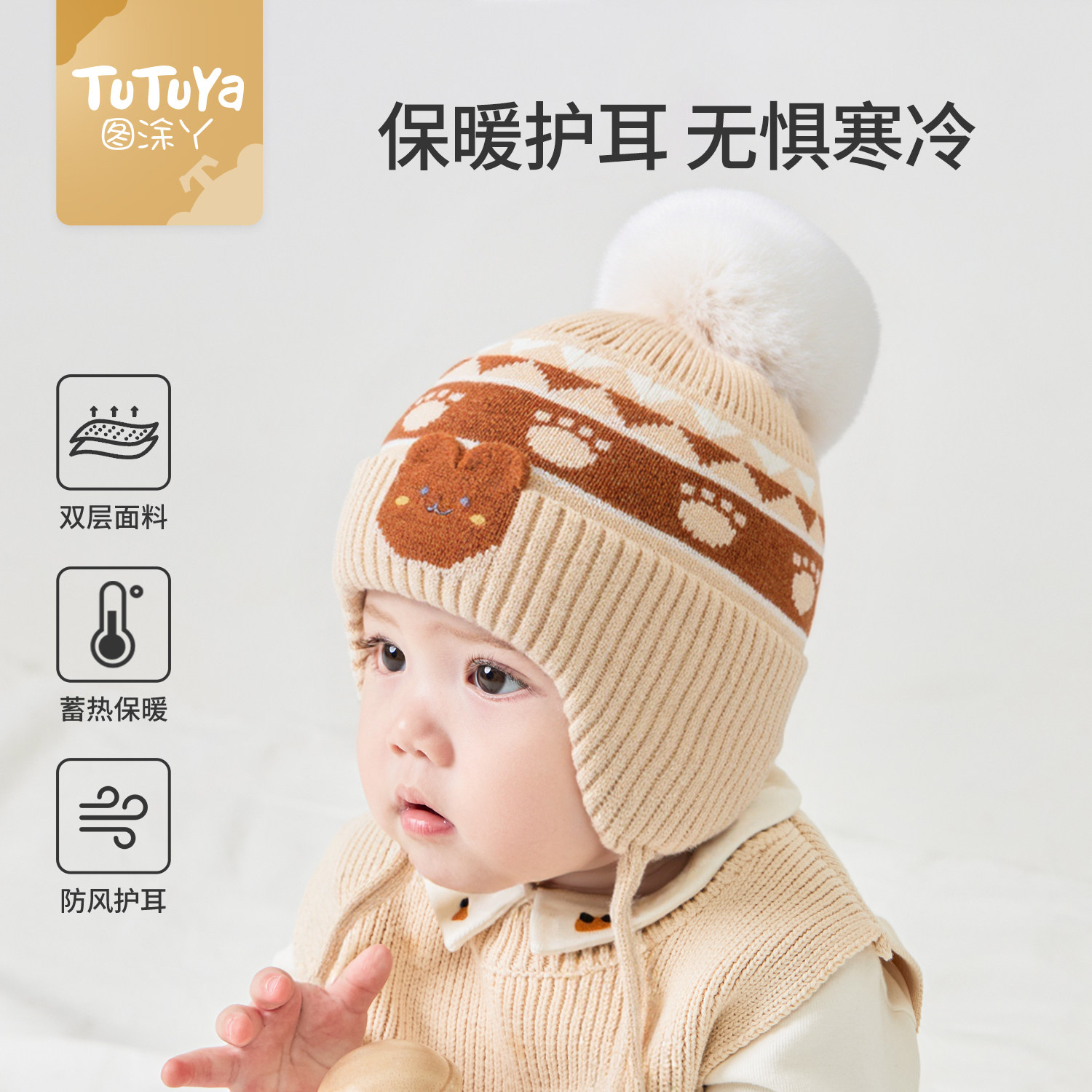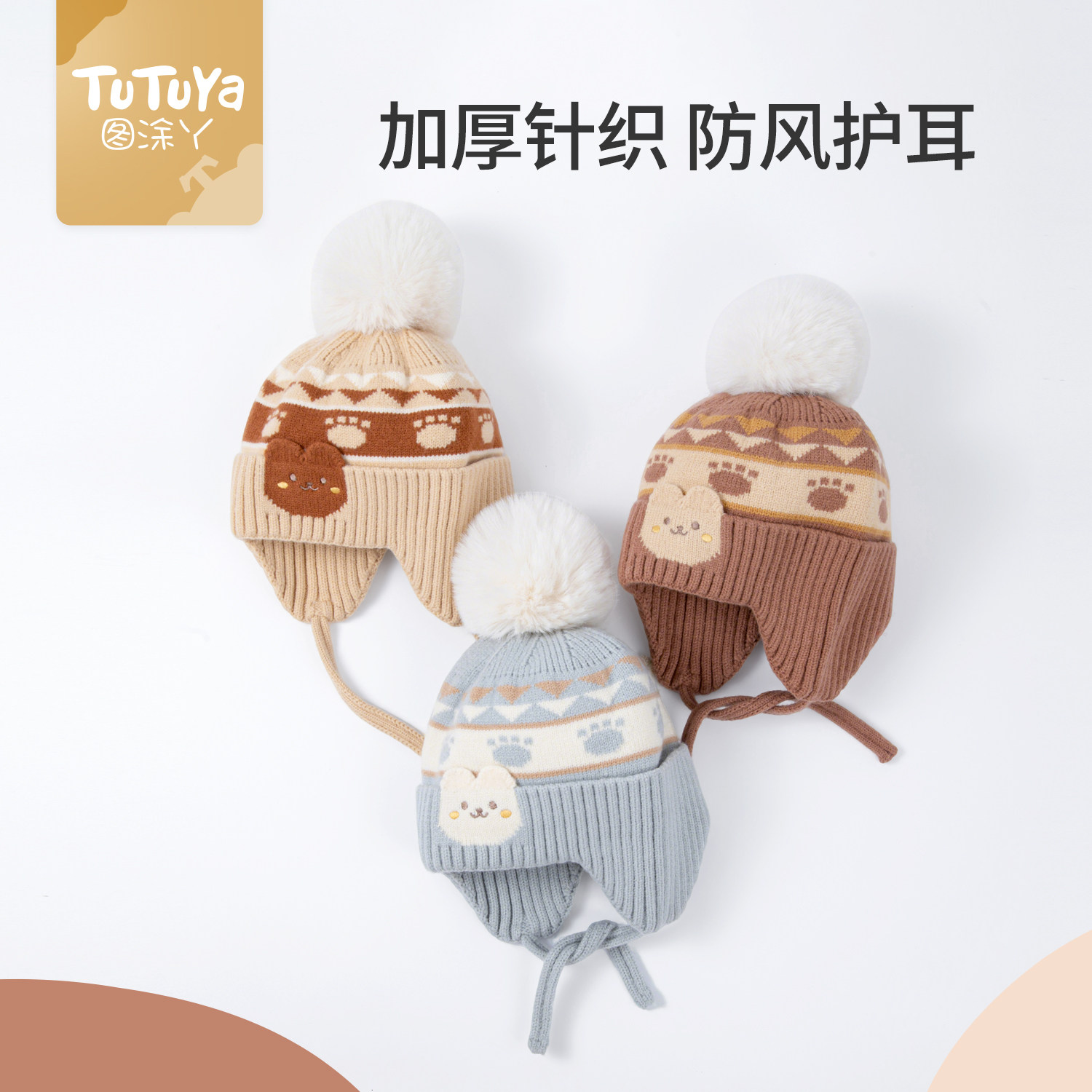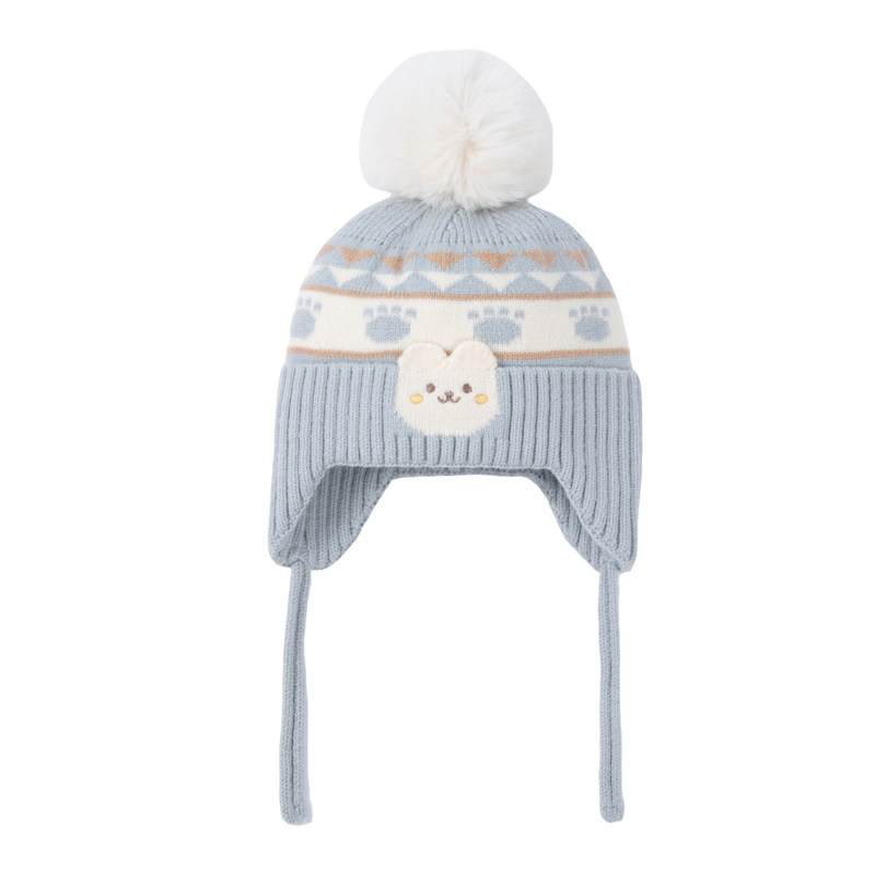 hugz儿童帽子围巾秋冬户外男孩女孩保暖针织毛线帽护耳防风熊仔帽