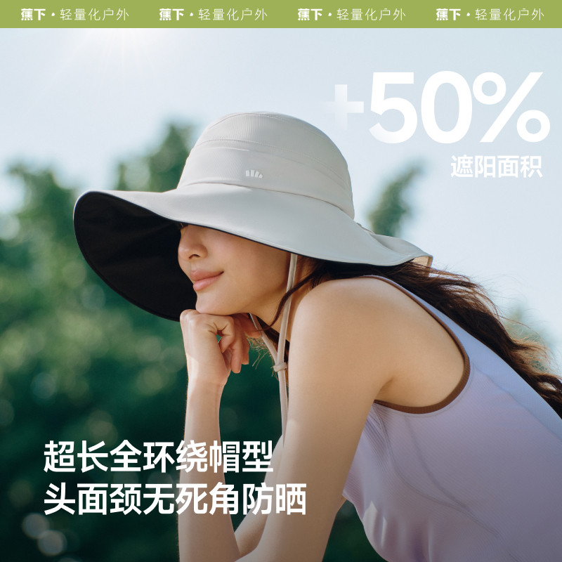 蕉下大帽檐双面渔夫帽海边环绕防晒帽易收纳防紫外线遮阳太阳帽子