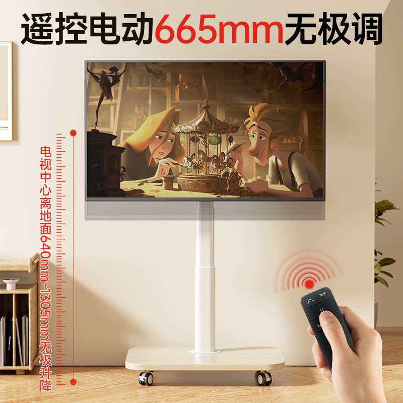 通用电视机移动支架智能遥控电动升降艺术落地推车可旋转556575寸