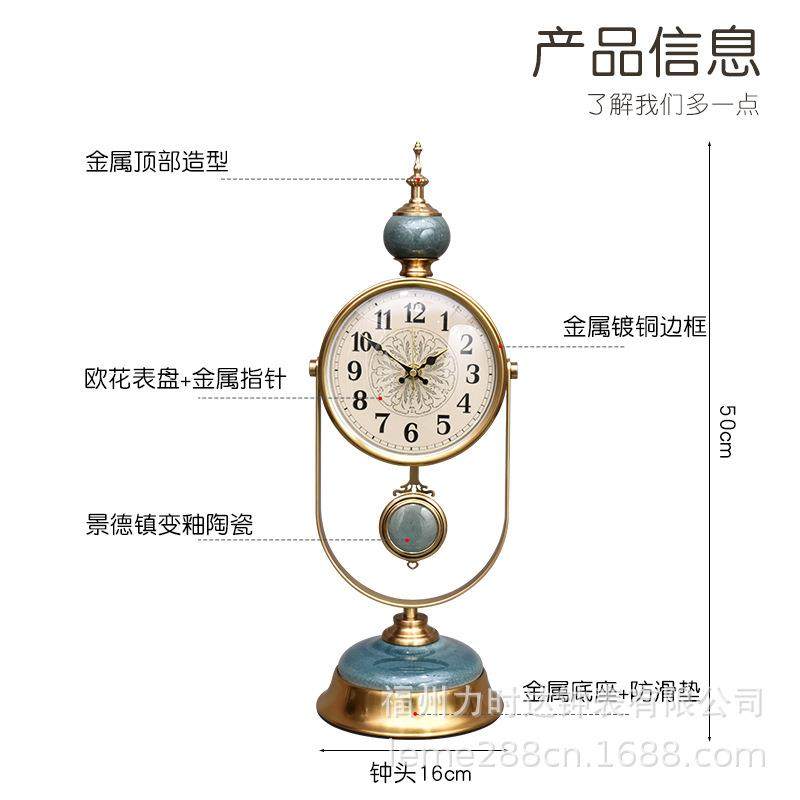 轻奢陶瓷客厅静音座钟时尚个性台钟美式复古立钟家居仿古摆件时钟