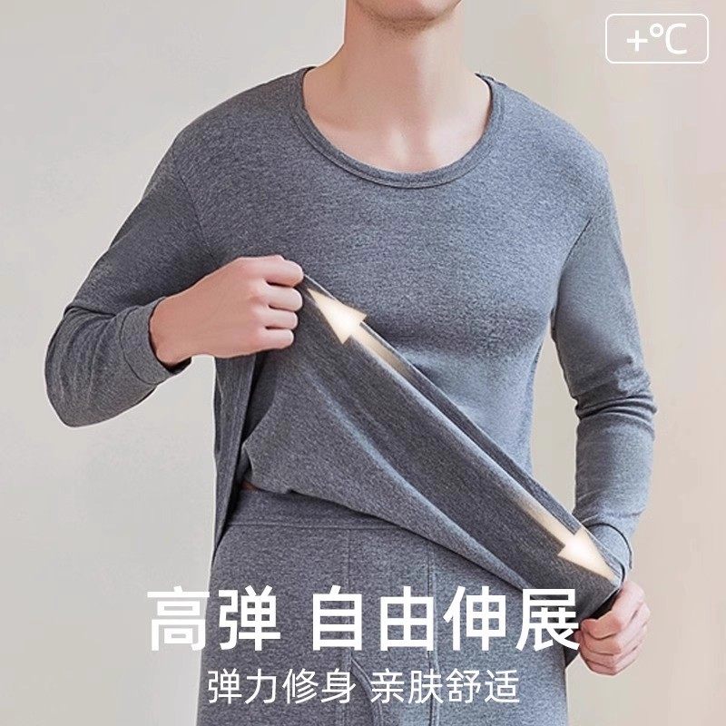 中高领保暖内衣男士加绒加厚套装大码德暖绒秋衣秋裤打底棉毛衫冬