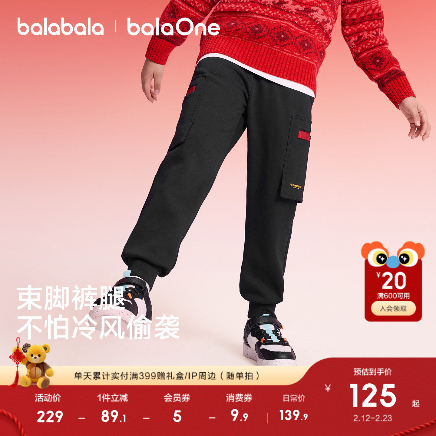 巴拉巴拉童装男童裤子儿童加绒长裤2026春秋装大童拜年红色拜年服