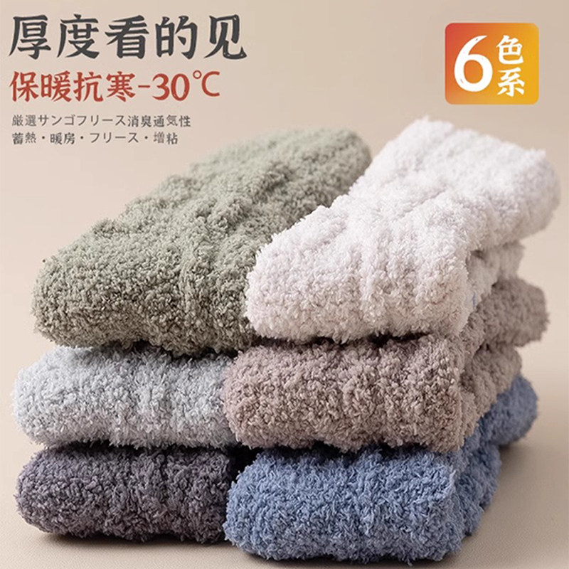 珊瑚绒袜子女冬季加厚加绒保暖地板袜睡眠月子袜秋冬新款睡觉袜子