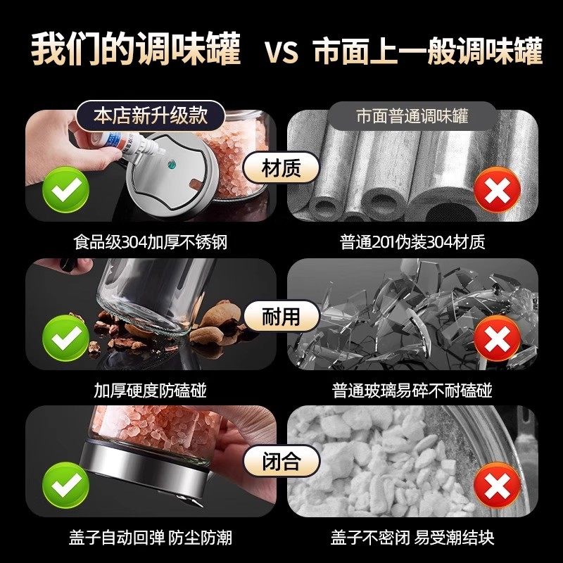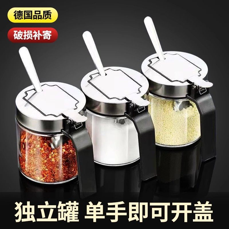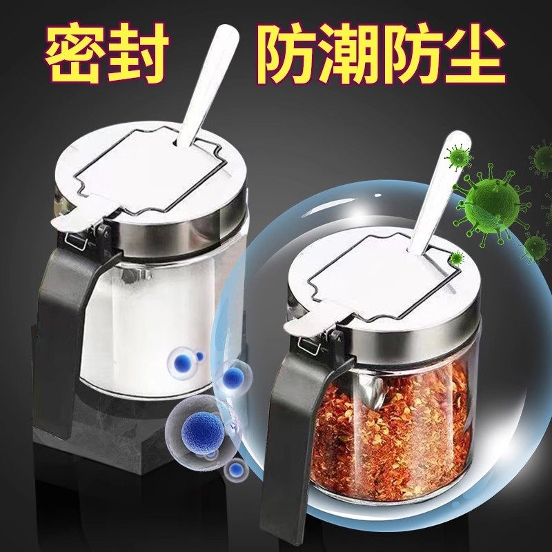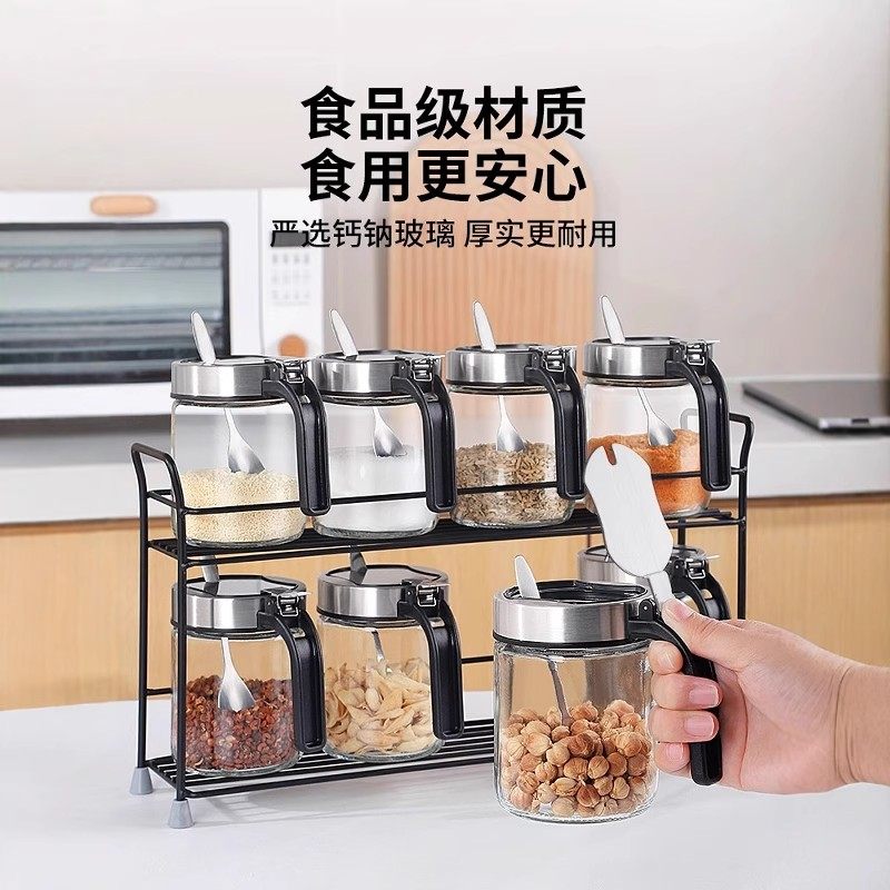 新款厨房调料罐套装食品级密封防潮调味盒盐罐带勺透明收纳容器
