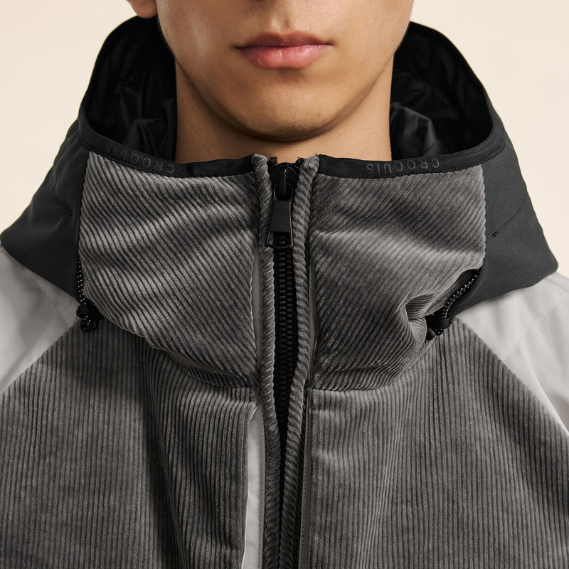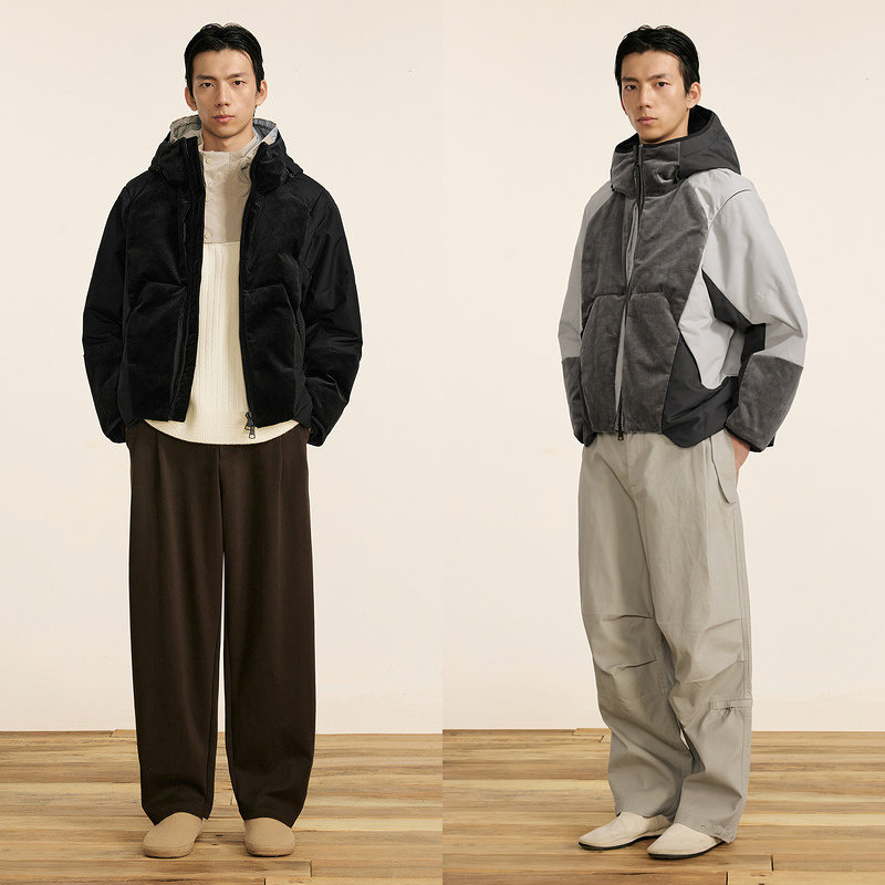 可拆卸拼接羽绒服,拼接灯芯绒打造层次感