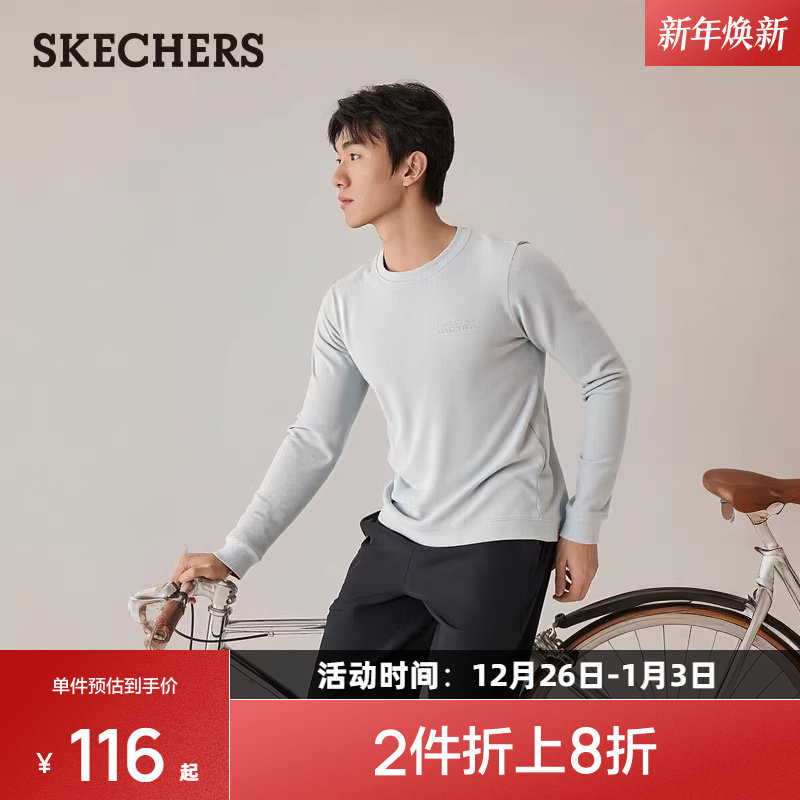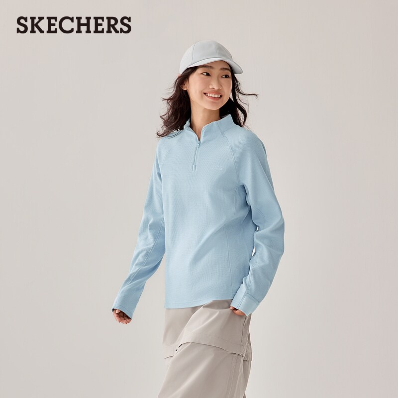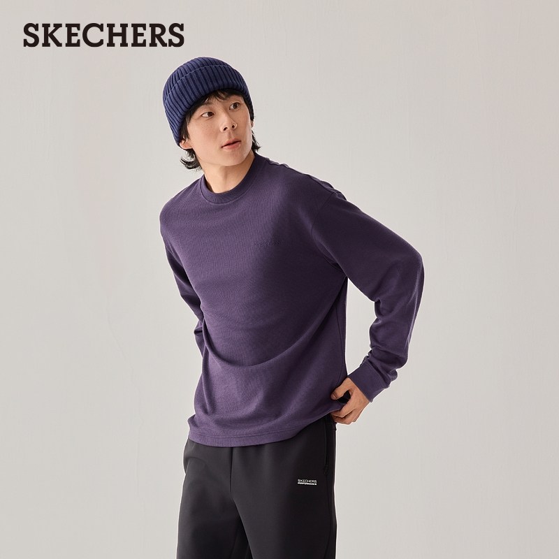 梁朝伟同款丨斯凯奇长袖T恤2025秋季男士华夫格舒适休闲运动卫衣