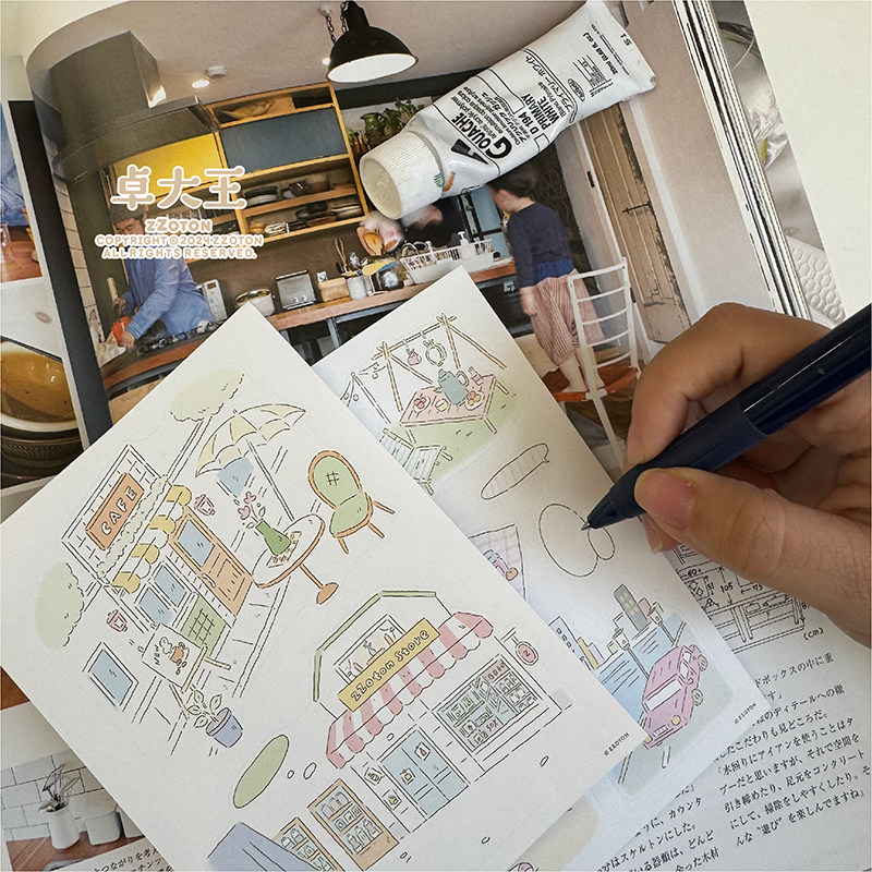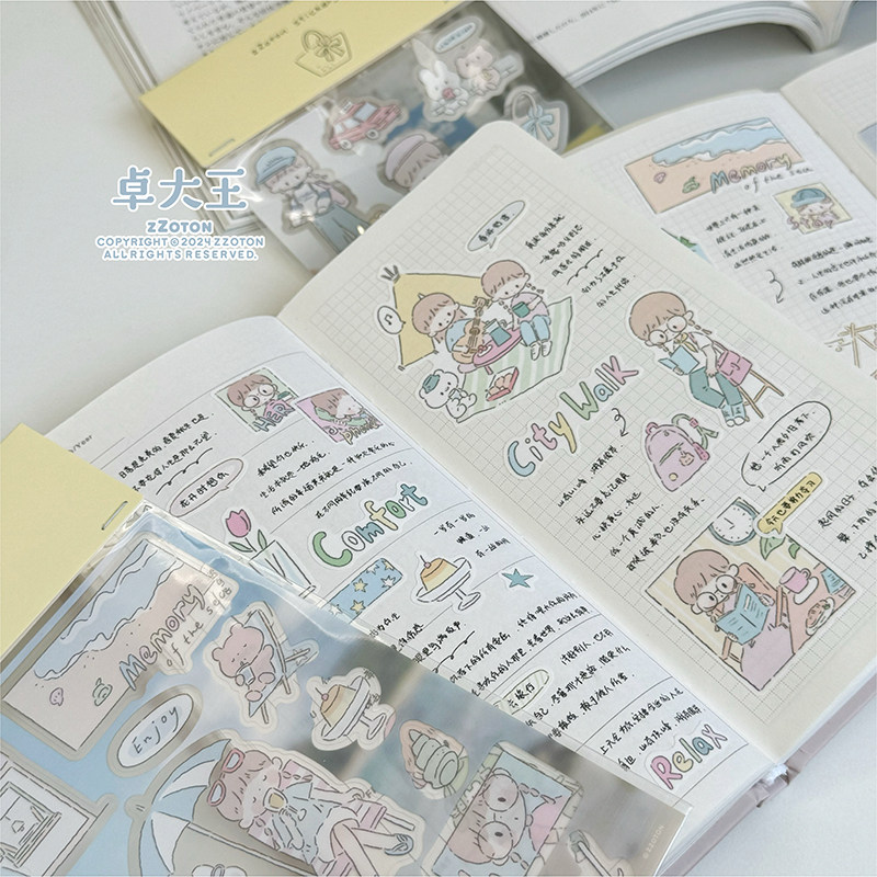 卓大王【城市漫步贴纸】阿卓PET合成纸贴纸人物手帐素材闪砂漫画