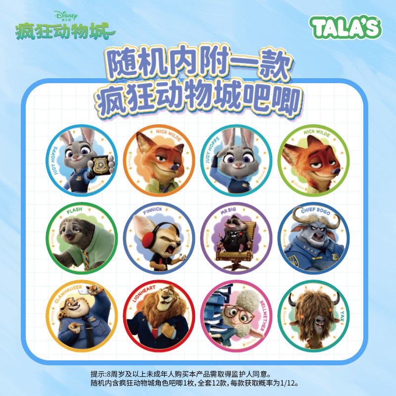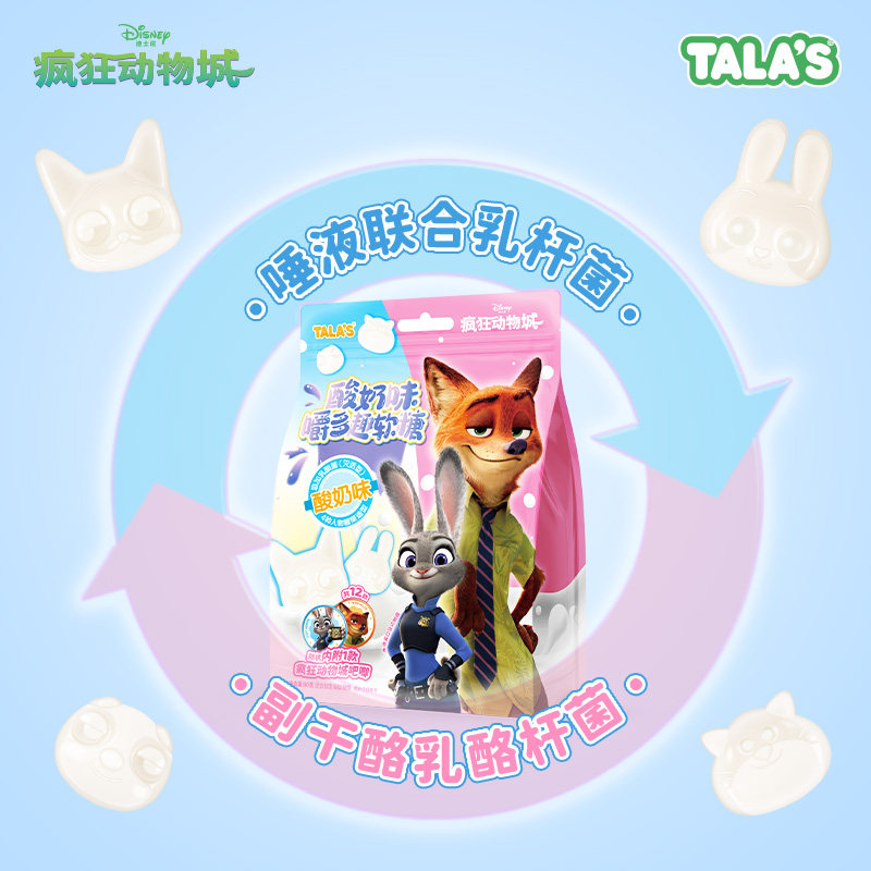 TALA'S疯狂动物城联名酸奶味软糖网红零食趣味造型糖果80g附吧唧