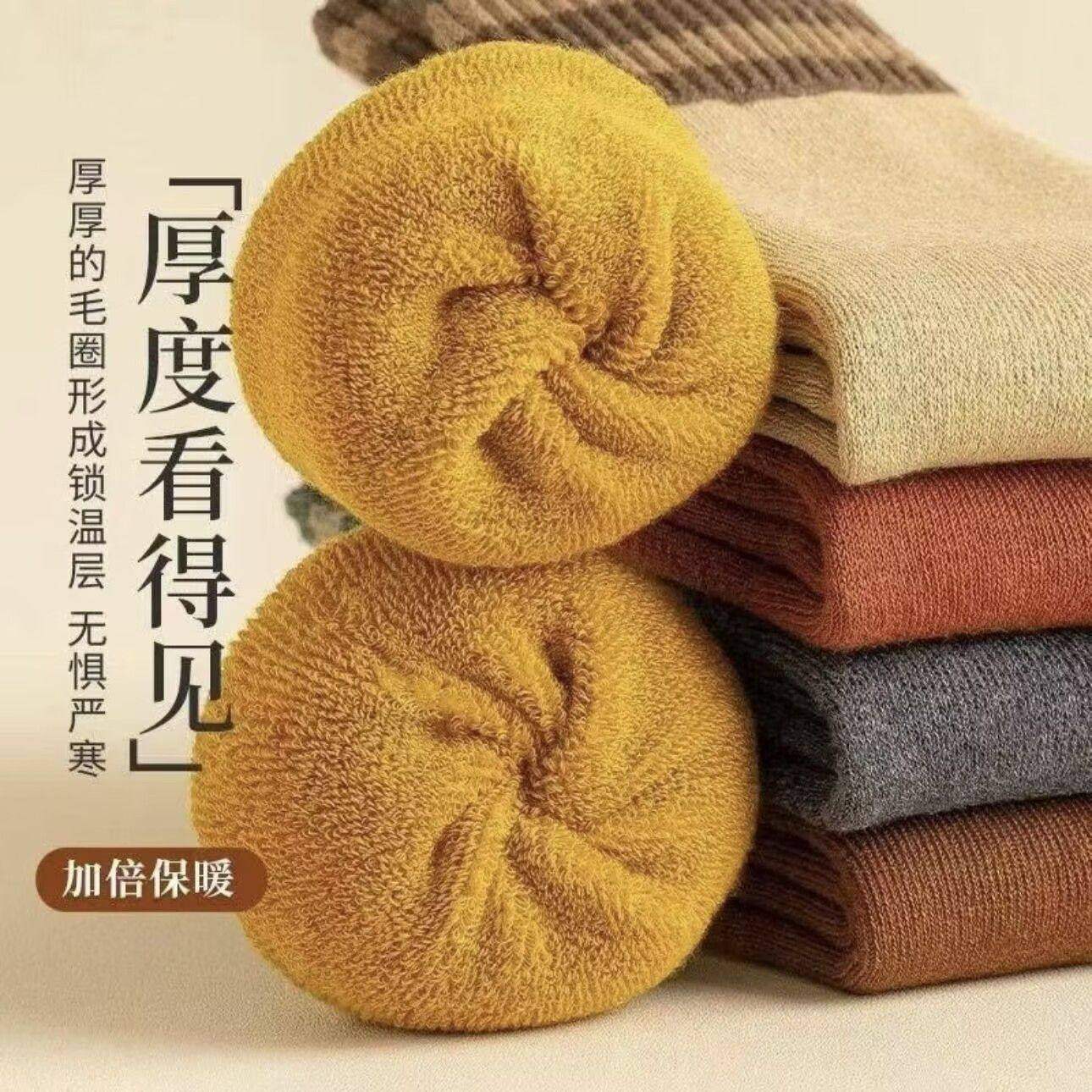 女士袜子冬天厚款加毛袜子自发热毛圈袜情侣款男女同款保暖毛巾袜