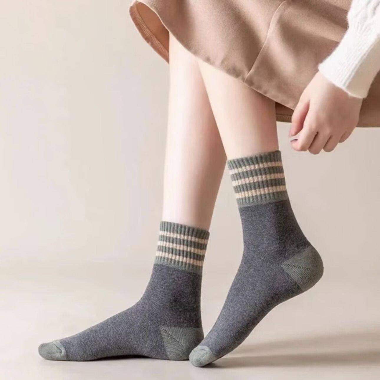 袜子女款纯棉中筒袜秋冬季抗菌防臭吸汗运动棉袜春秋款无骨短筒袜