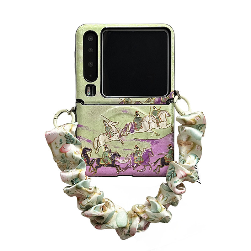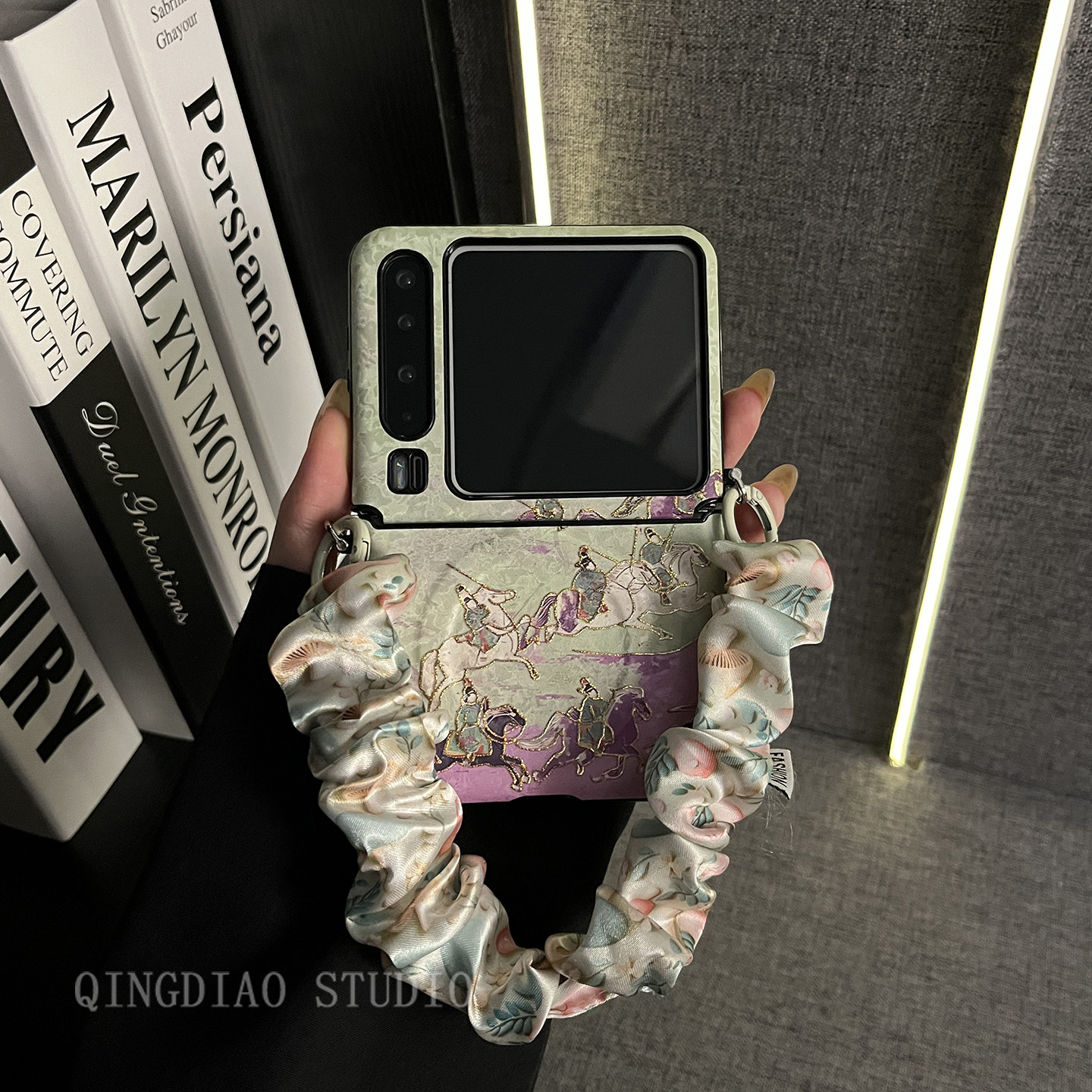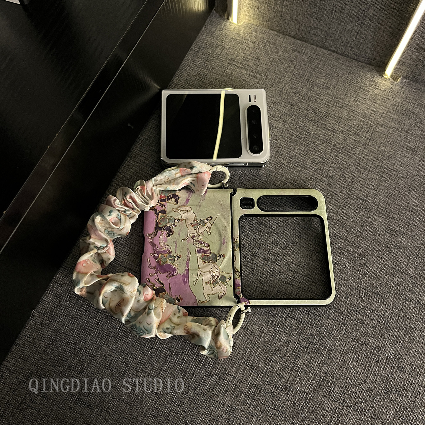轻调 艺术风万马奔腾磁吸丝巾手提链适用于华为Pura X手机壳全包新款purax典藏版折叠屏p50宝盒翻盖防摔外壳