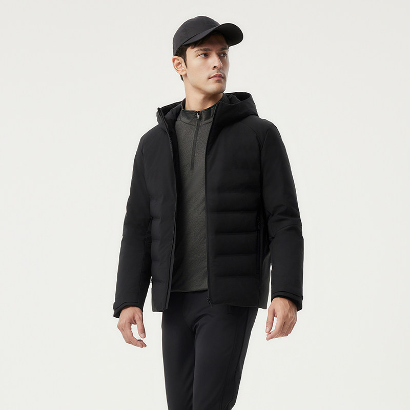 【商场同款】坦博尔奥莱冬装男鹅绒连帽无缝压胶短款商务羽绒服