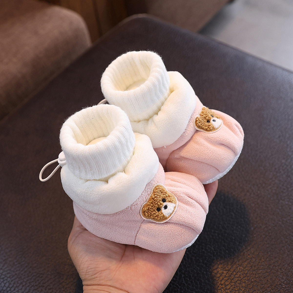 婧麒婴儿鞋子秋冬季加绒加厚宝宝不掉鞋0-1岁男女新生儿软底袜鞋