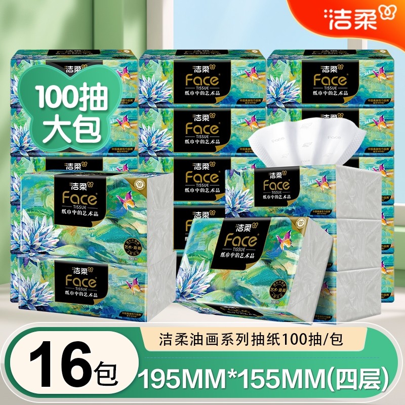 洁柔艺术油画抽纸100抽16包面巾纸餐巾纸4层卫生纸加厚4层木浆