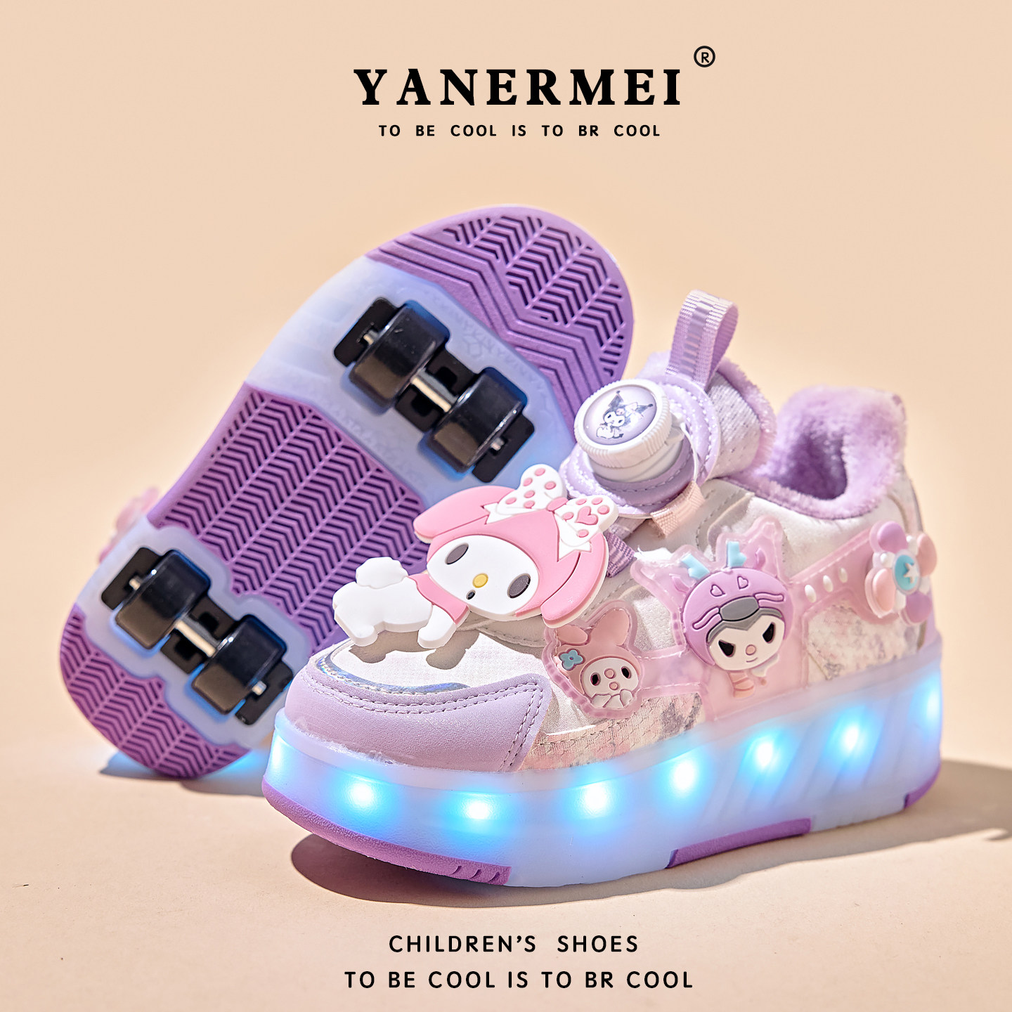 女童暴走鞋秋冬季儿童轮滑鞋女孩四轮溜冰鞋闪灯加绒鞋子发光滑轮
