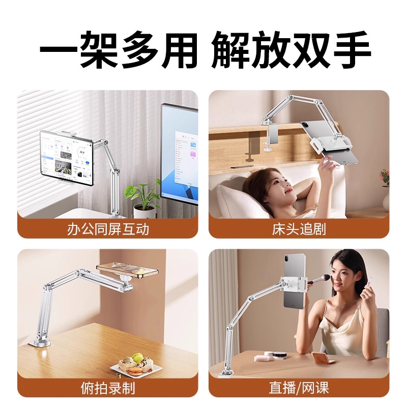 平板支架2025新款 iPad手机桌面懒人悬臂铝合金万向支撑架可360度旋转伸缩升降折叠通用床上床头追剧直播专用