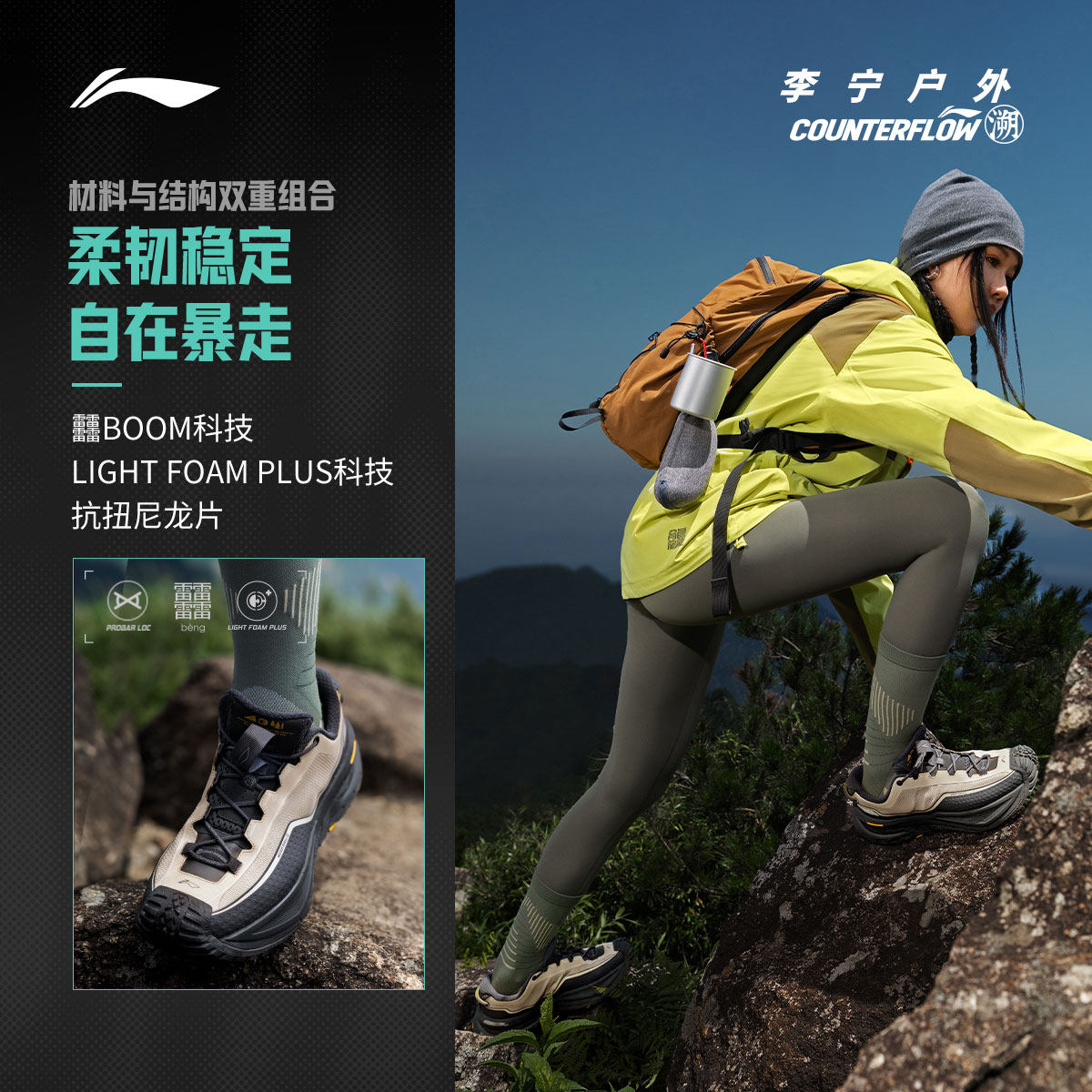 李宁户外CF溯丨行川SE徒步鞋稳定支撑防滑耐磨轻便男女运动登山鞋