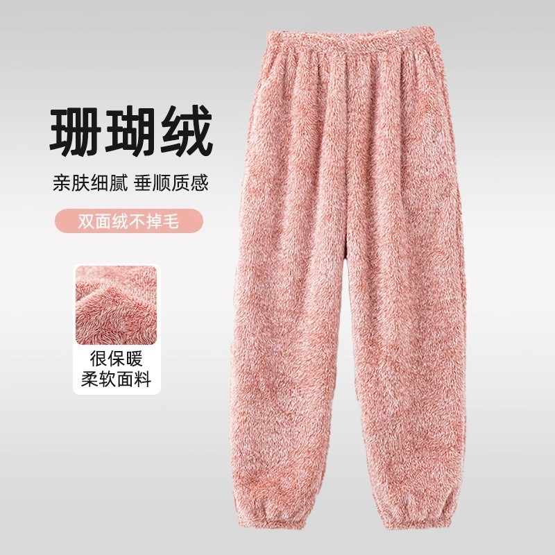 睡裤女冬季法兰绒裤子女士大码加绒加厚暖暖裤珊瑚绒家居裤可外穿