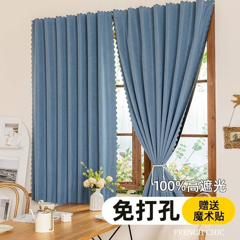 简易成品窗帘2025新款纯色免打孔魔术贴帘子高支密卧室门帘出租屋