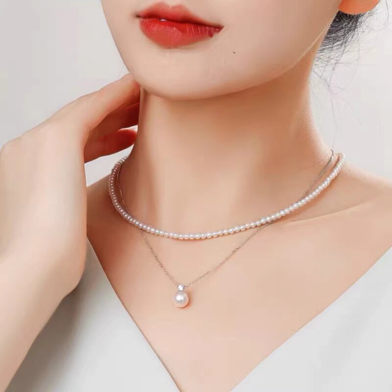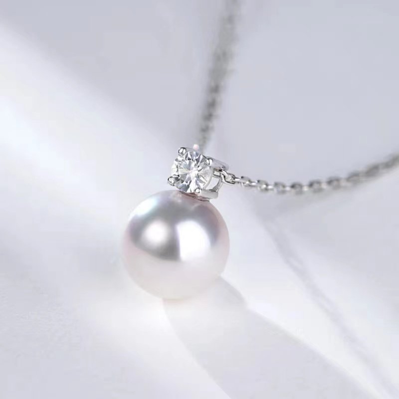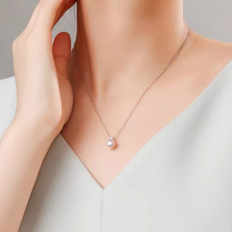 诸暨淡水珍珠吊坠正圆微瑕戴妃款项链轻奢高级感锁骨链珠宝镶嵌
