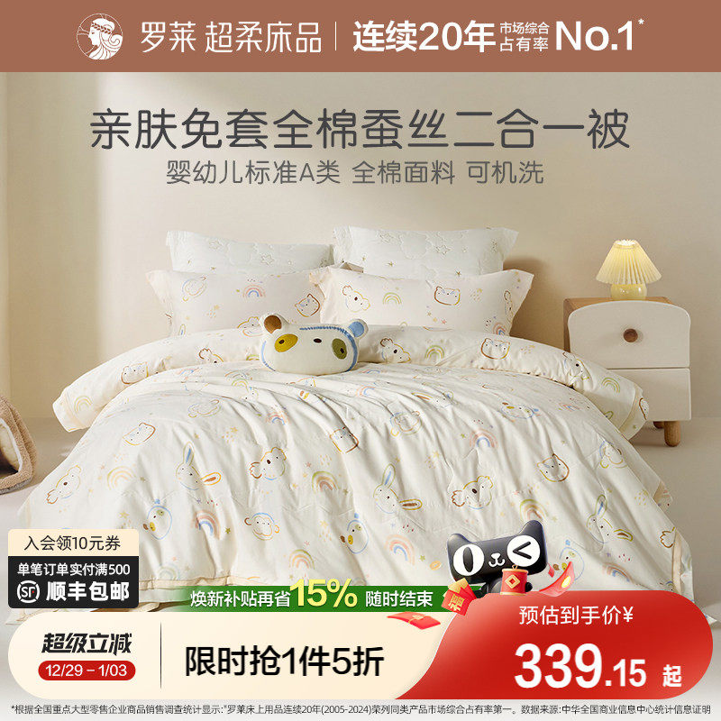 罗莱家纺儿童25新品蚕丝被可水洗免套全棉A类被子被芯子母被四季