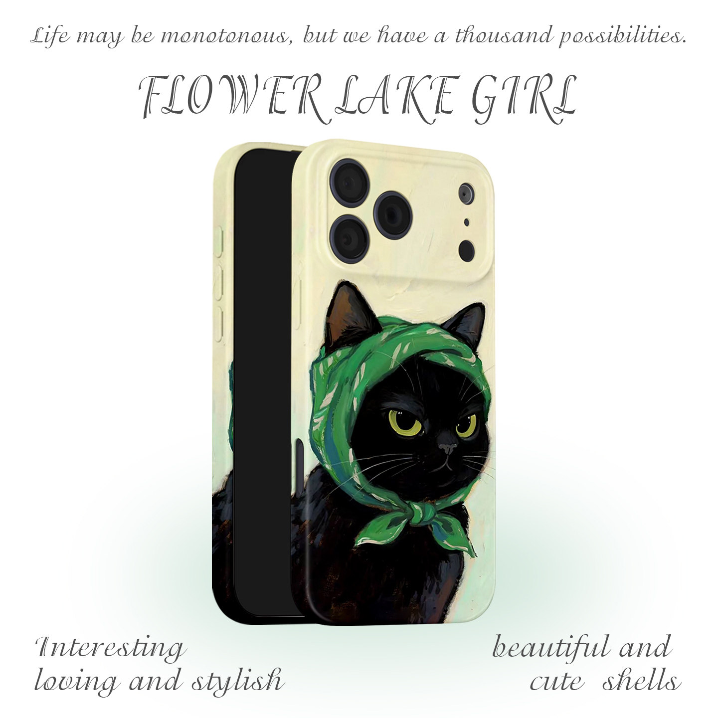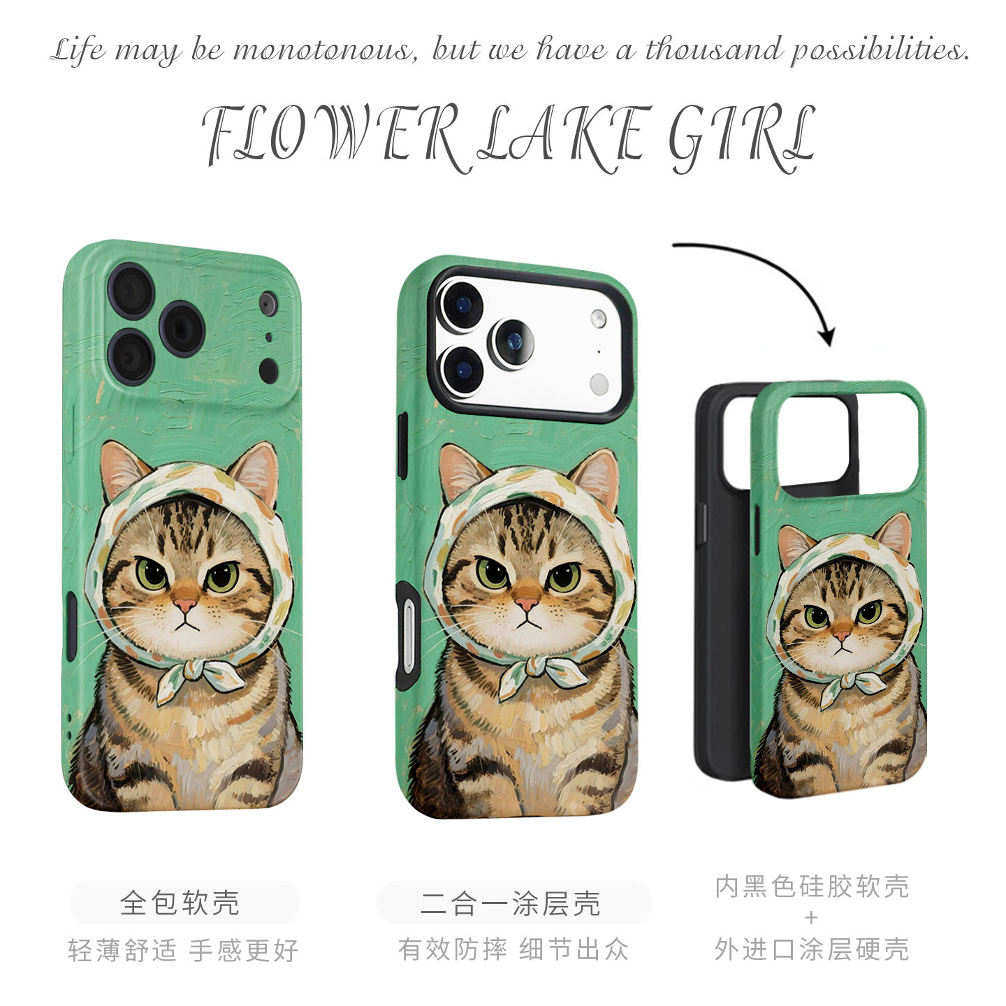 【猫老大】拽酷花巾猫咪适用iPhone16/15promax手机壳华为pura70小米15畅享70情侣vivoS20软iqooneo10苹果13