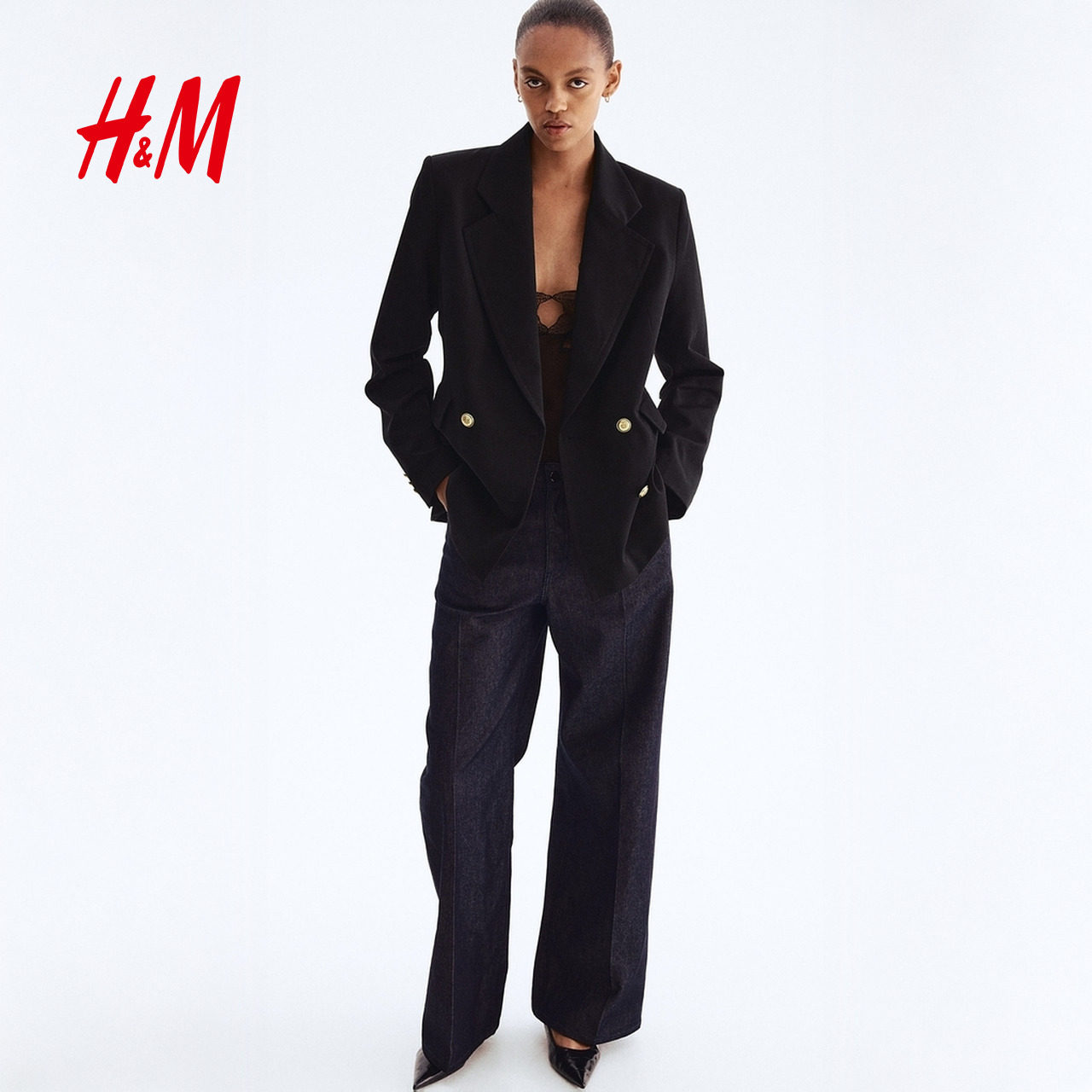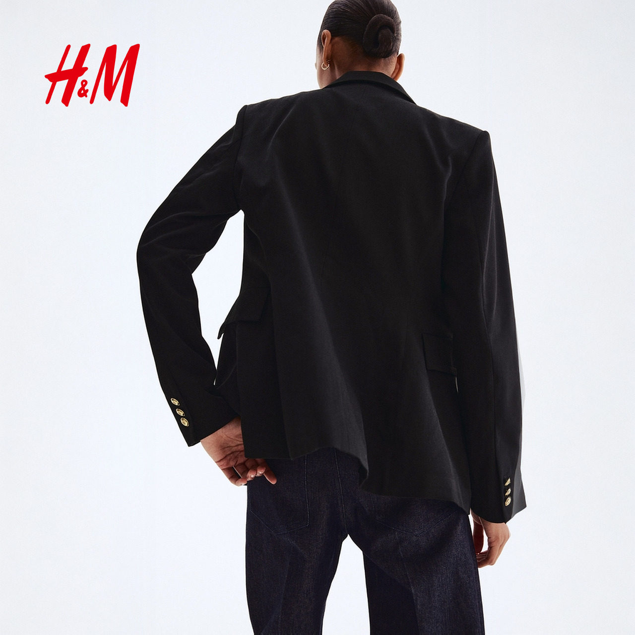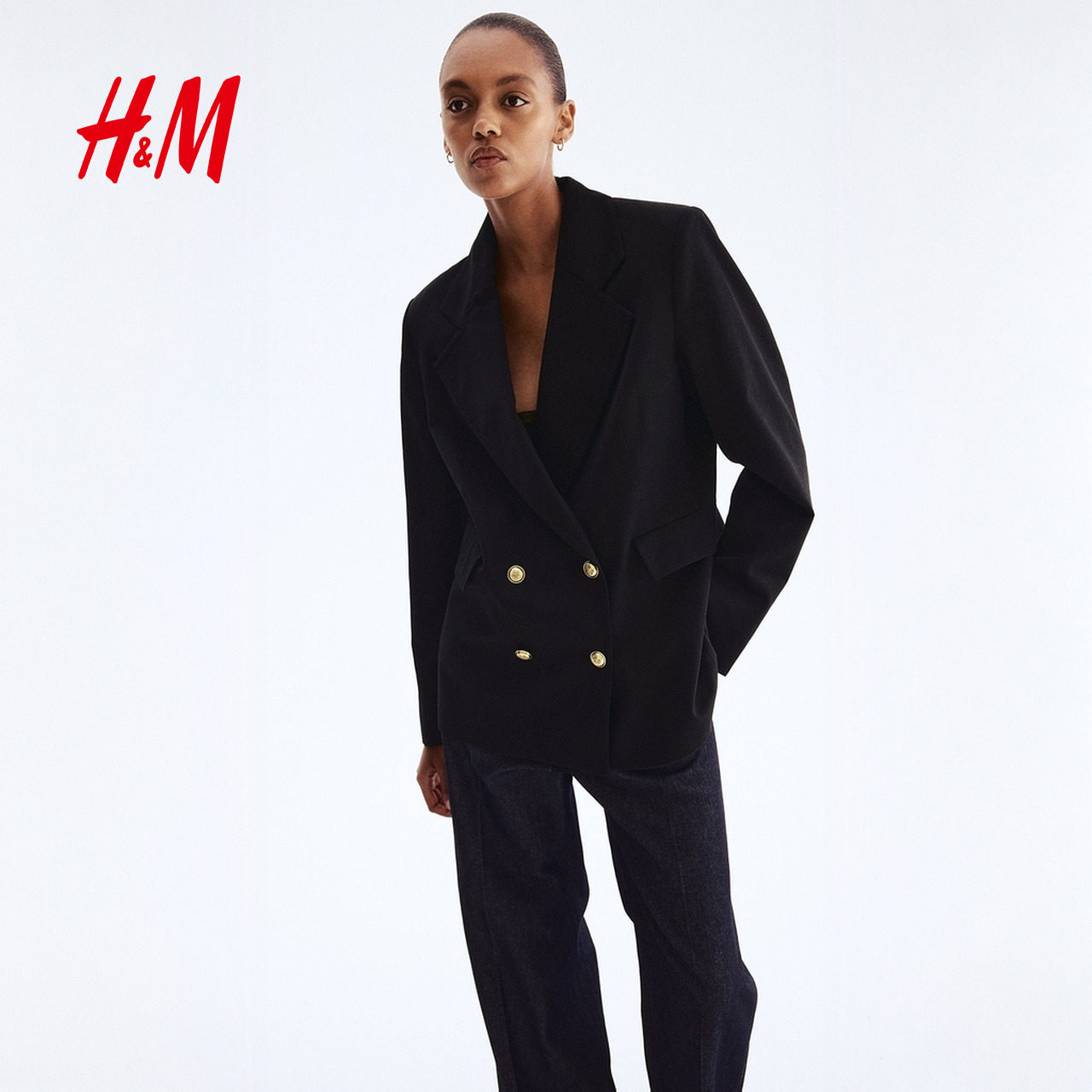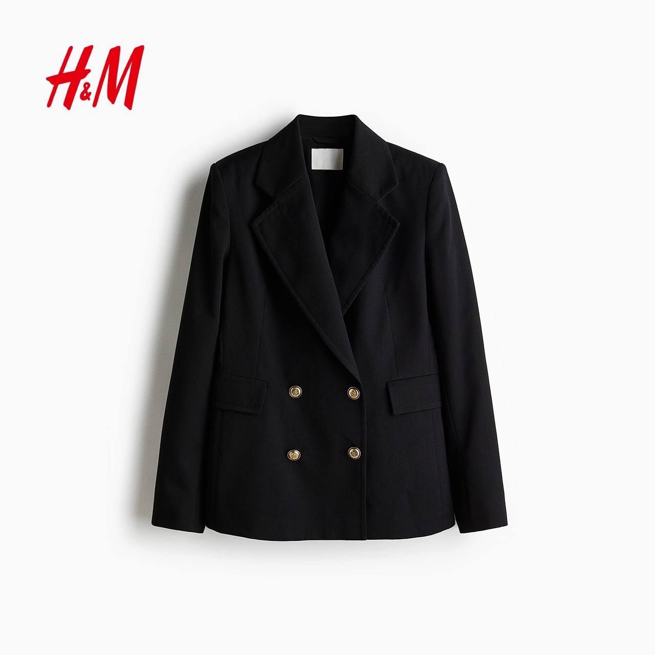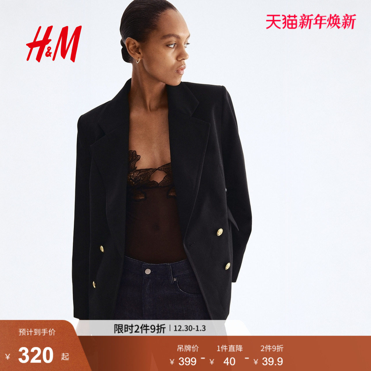HM女装西装2025冬季新款通勤职场双排扣平驳领西装外套1298013
