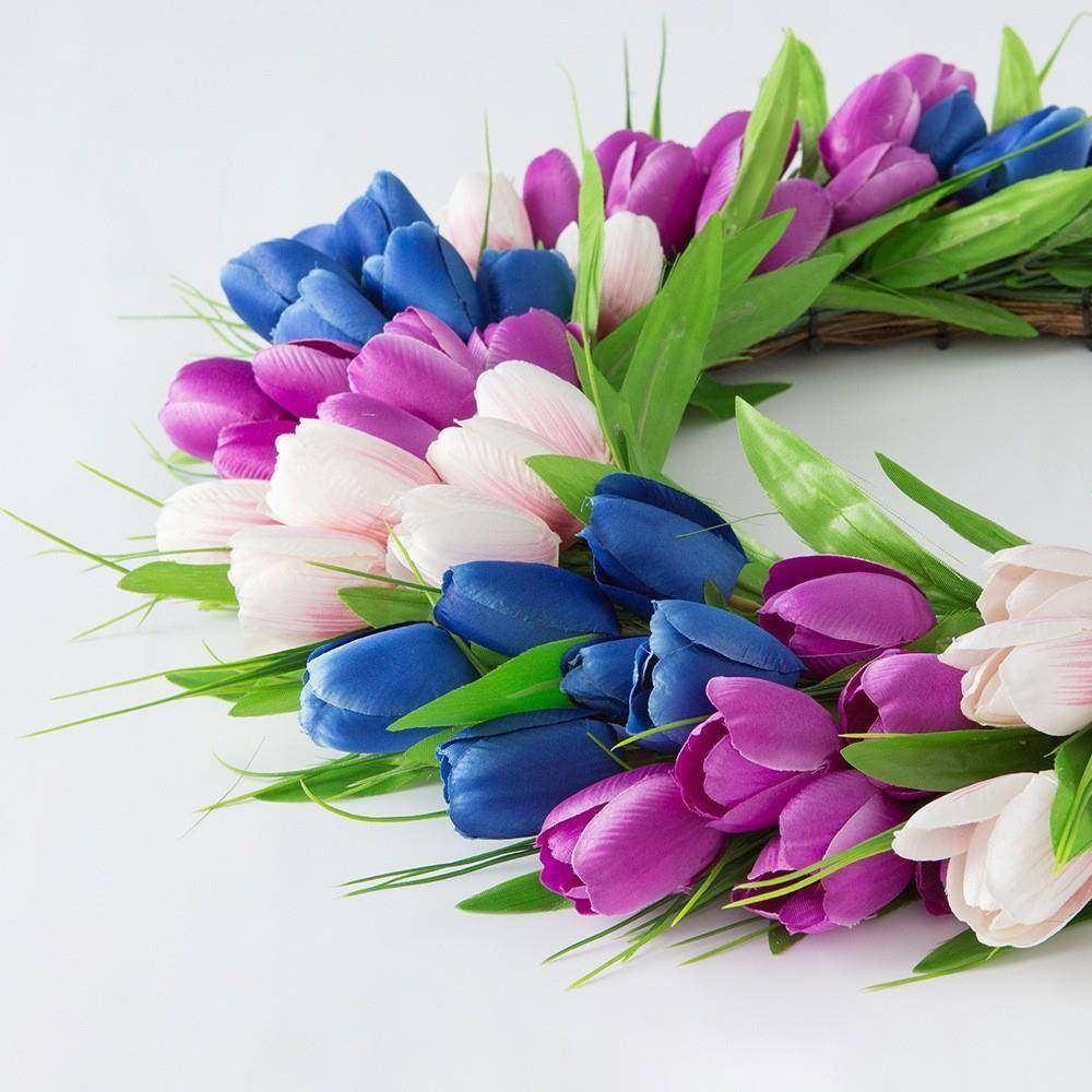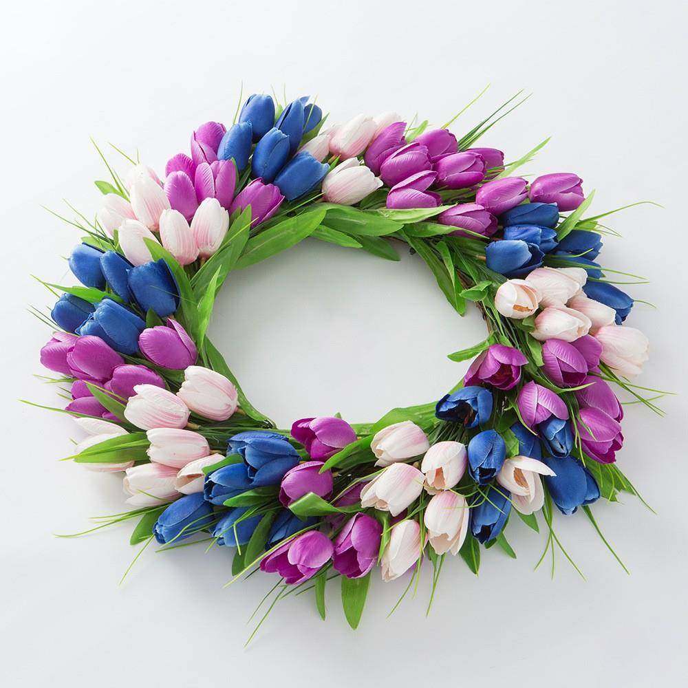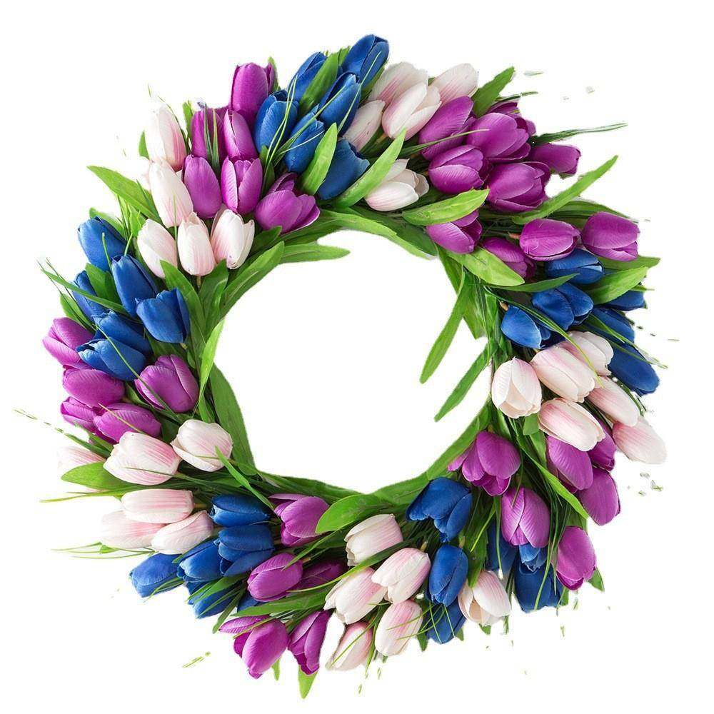 2025新款春款仿真郁金香花环 家居装饰花圈门挂 绢花壁饰挂饰厂家