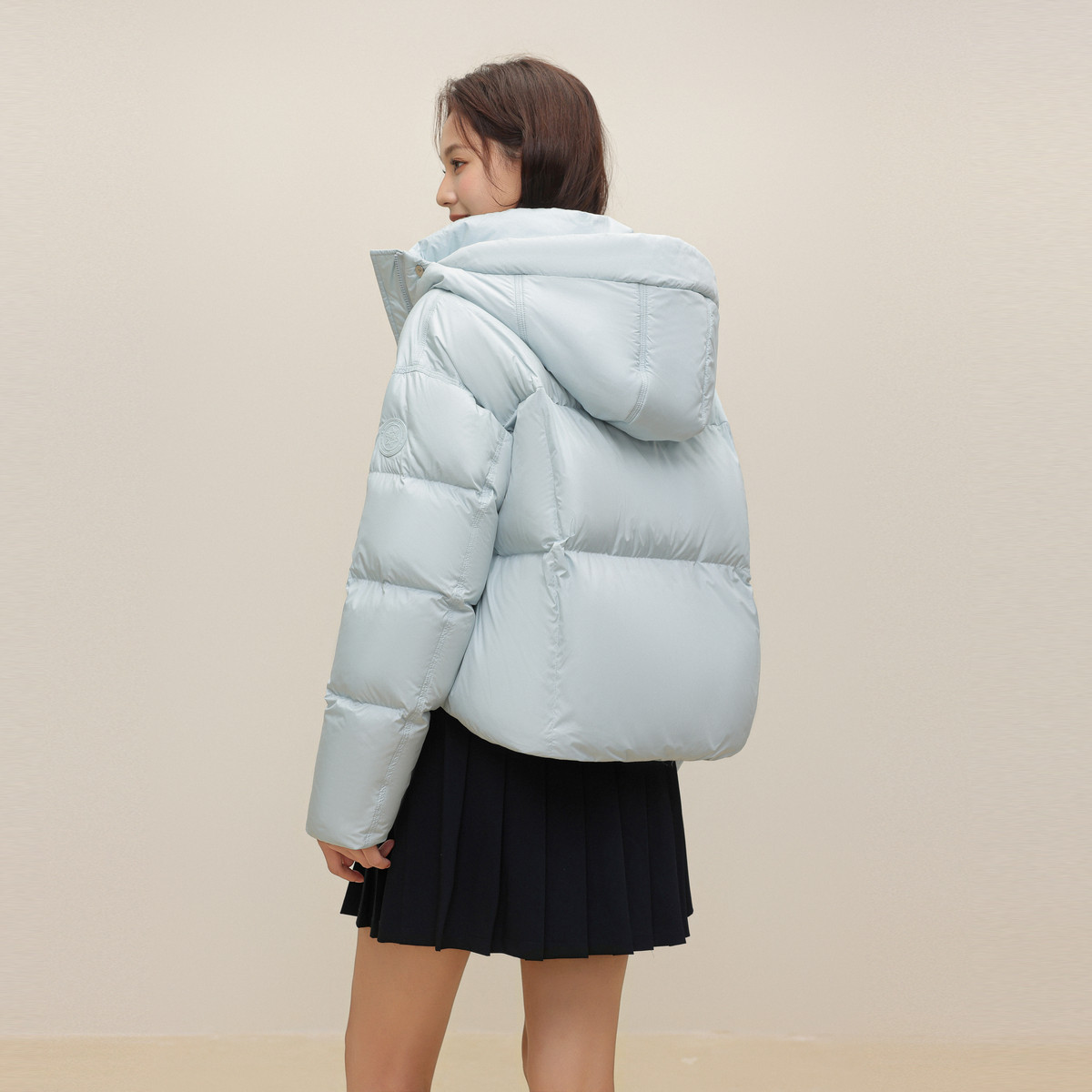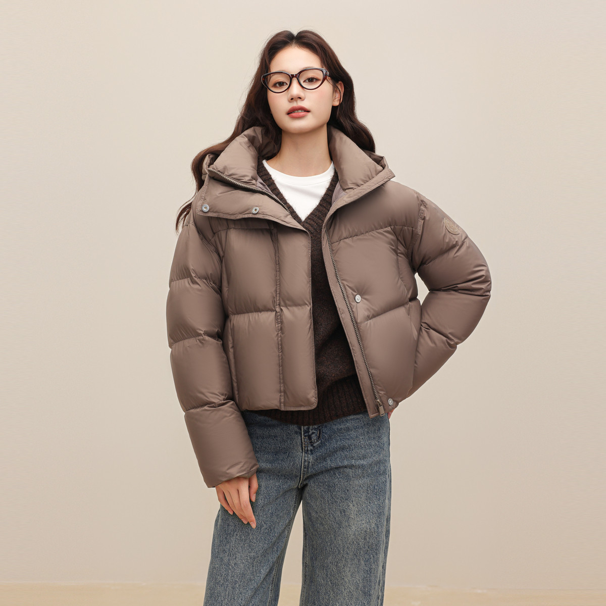 【鞠婧祎同款】鸭鸭2025年冬新款百搭短款女士纯色立领羽绒服外套
