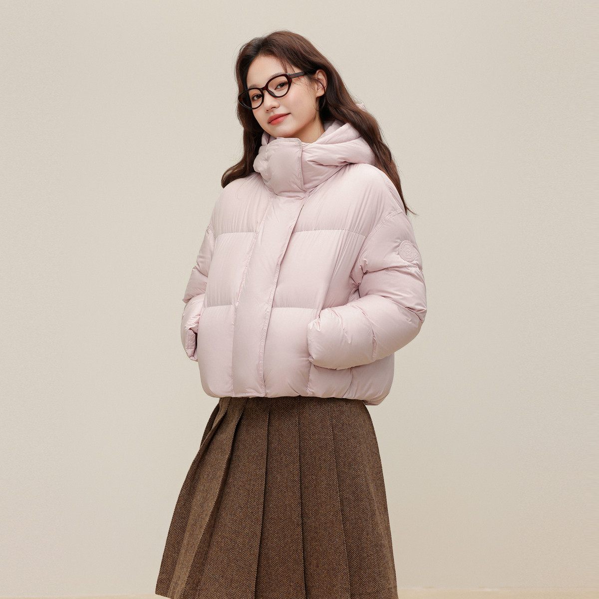 鸭鸭2025秋冬新款立领短款羽绒服小个子女冬多巴胺连帽可拆帽外套