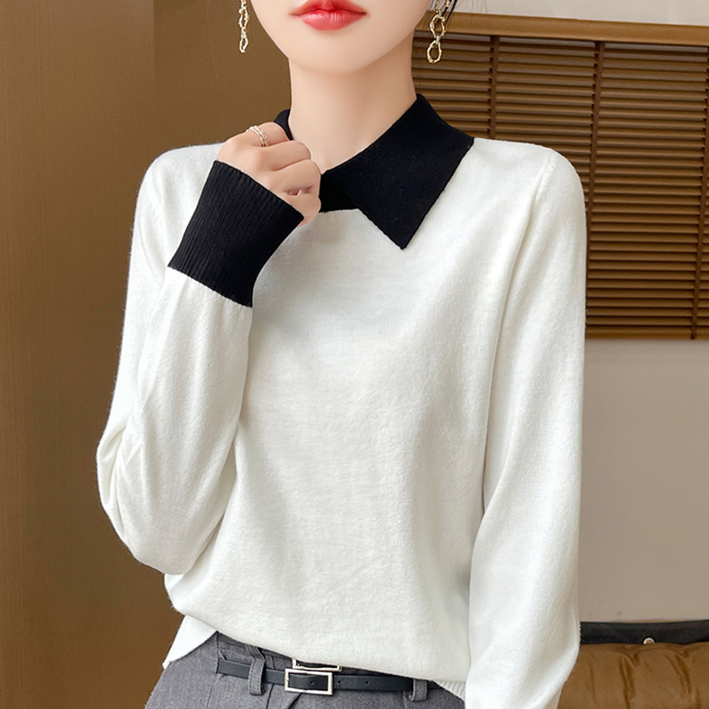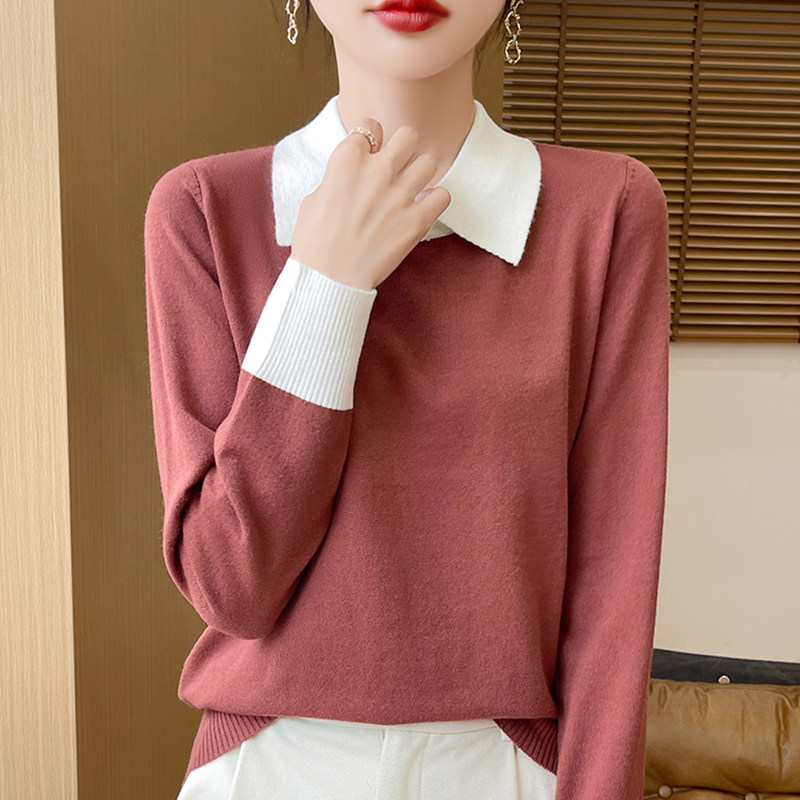 撤柜撤标(A)假两件针织打底衫女春秋流行内搭上衣洋气女装毛衣