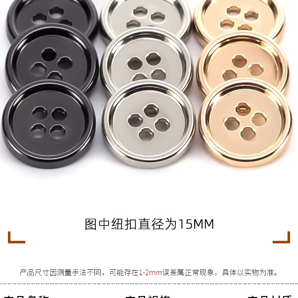 金属纽扣女衬衫西装袖扣男大衣毛呢风衣钮扣西服四眼裤扣圆形扣子