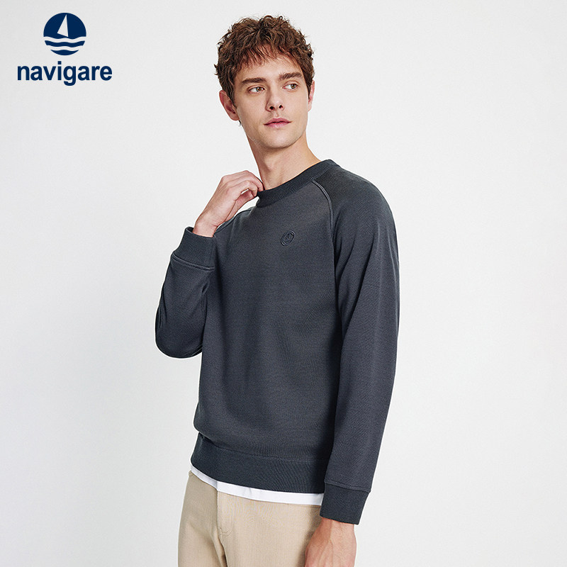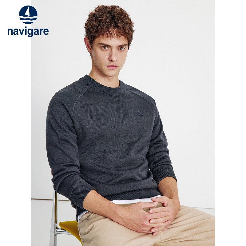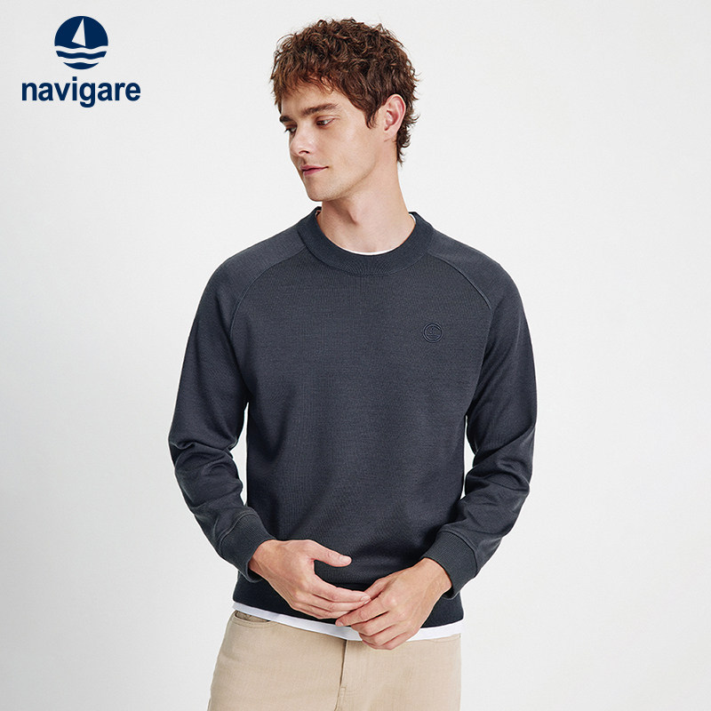 [可机洗]Navigare意大利小帆船灰色休闲毛衣男冬季加绒针织羊毛衫
