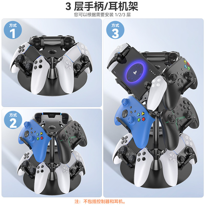 游戏手柄支架PS5/4/3通用展示架收纳Xbox头戴式耳机支架任天堂switch掌机收纳架3层手机游戏机桌面收纳架子