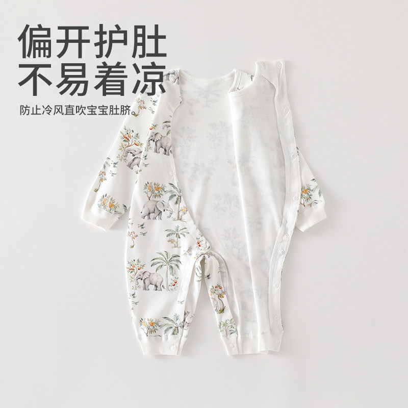 婧麒新生婴儿衣服春秋a类纯棉连体衣初生满月宝宝翻领偏开和尚服