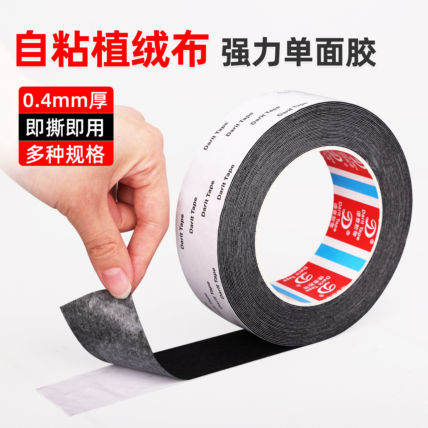 德意胶带0.4mm厚黑色植绒布自粘胶带耐磨防滑家具保护装饰相框画框汽车密封条胶条隔音降噪单面胶10米长