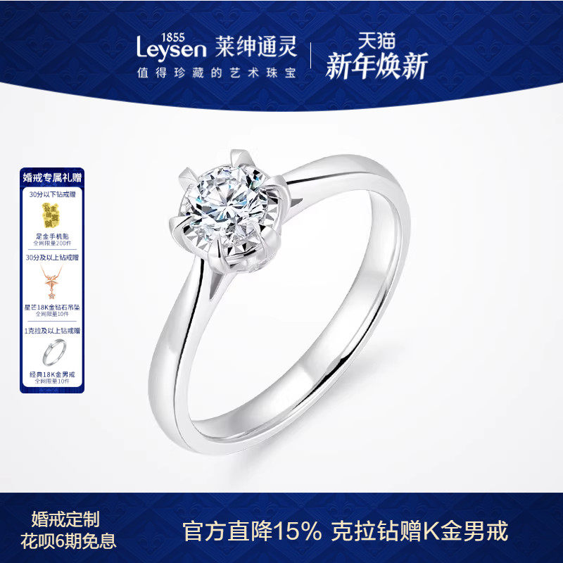 【婚戒定制】莱绅通灵 倾心经典简约四六爪钻石戒指18k金婚戒钻戒
