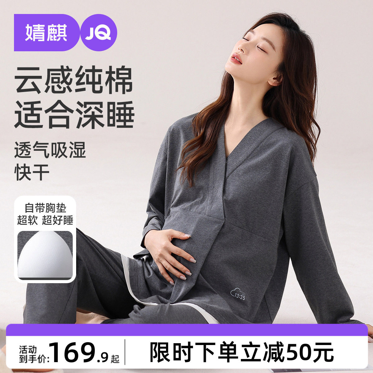 婧麒纯棉带胸垫月子服秋冬产后孕妇睡衣哺乳产妇待产喂奶家居服女
